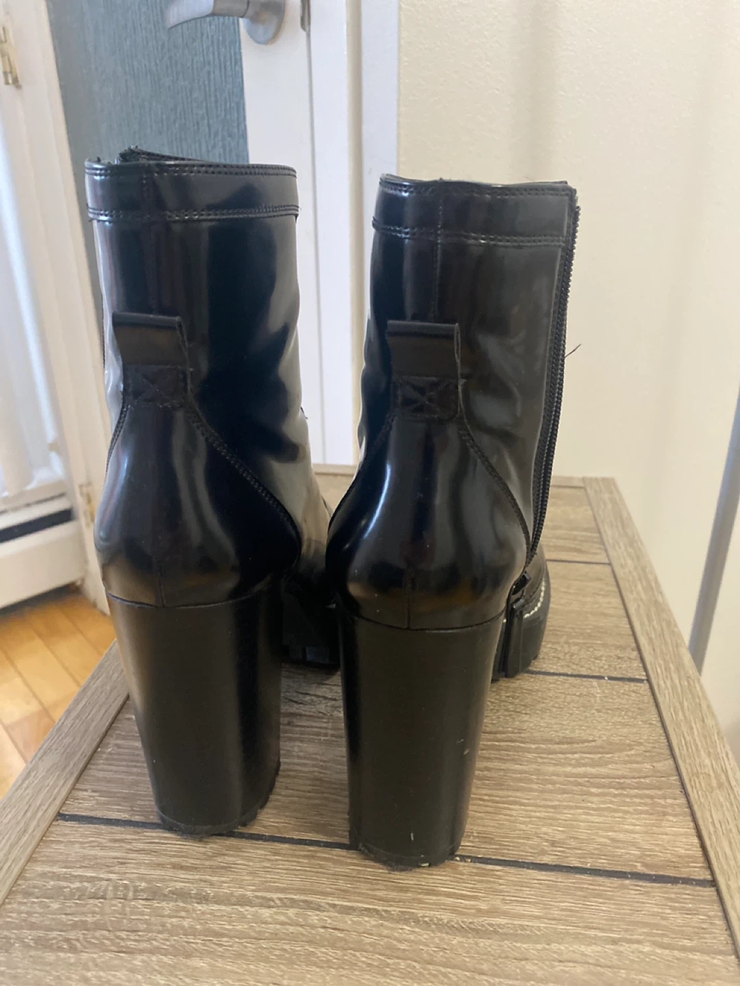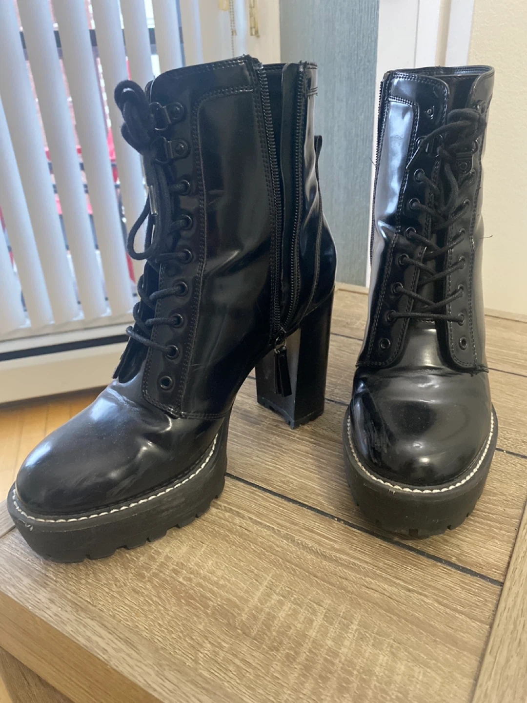 I'm selling a pair of Steve Madden black lace-up heeled boots. They're in great condition and ready for a new owner! They are a size 38