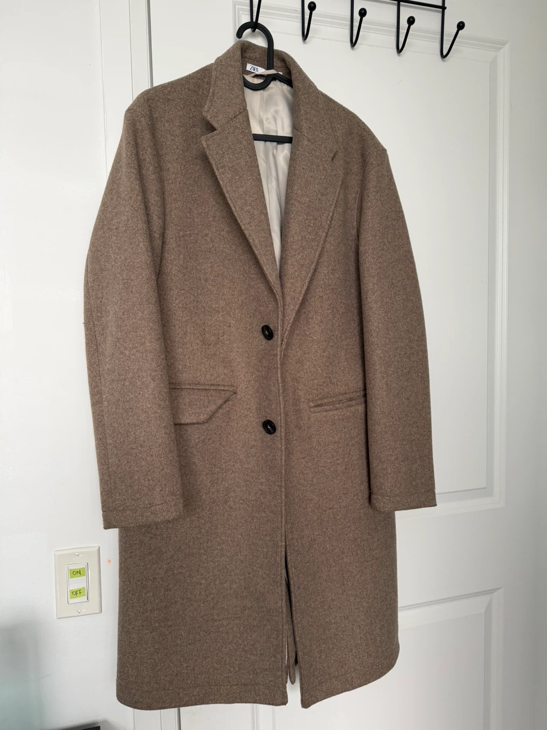 Selling a Zara wool blend coat in a neutral brown colour. It's a size small, and has a classic, versatile look. Perfect for layering this fall!