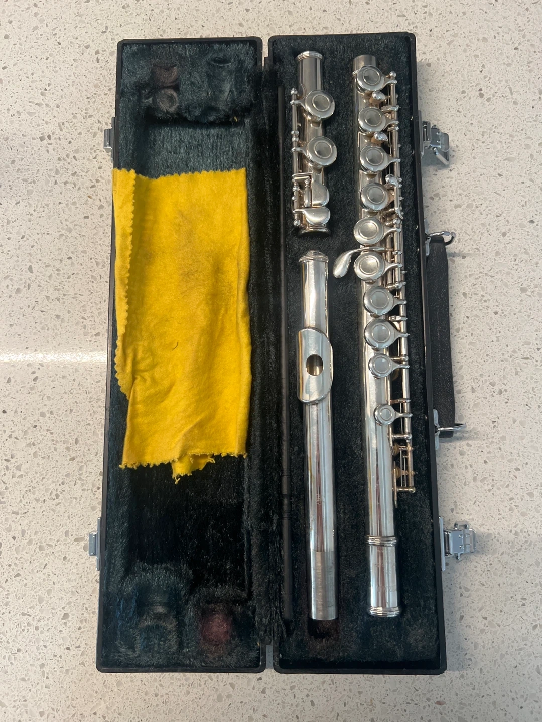 Selling a Yamaha flute, complete with its case. It's in good, working, and used condition, ready for a new musician to enjoy! Comes with a cleaning cloth as well. Any marks are just from over the years it’s been sitting in the case. I’ve cleaned the tarnish up!