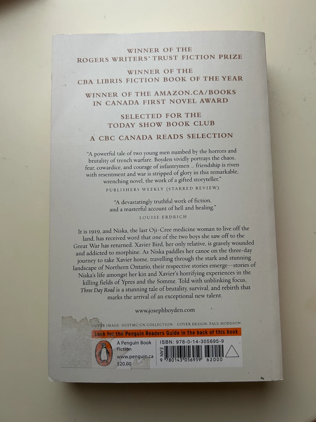 Selling a copy of "Three Day Road" by Joseph Boyden! It's an international bestseller and a winner of the Rogers Writers' Trust Fiction Prize. This book is also a CBC Canada Reads Selection. A powerful tale of two young men, it's a remarkable and wrenching novel.