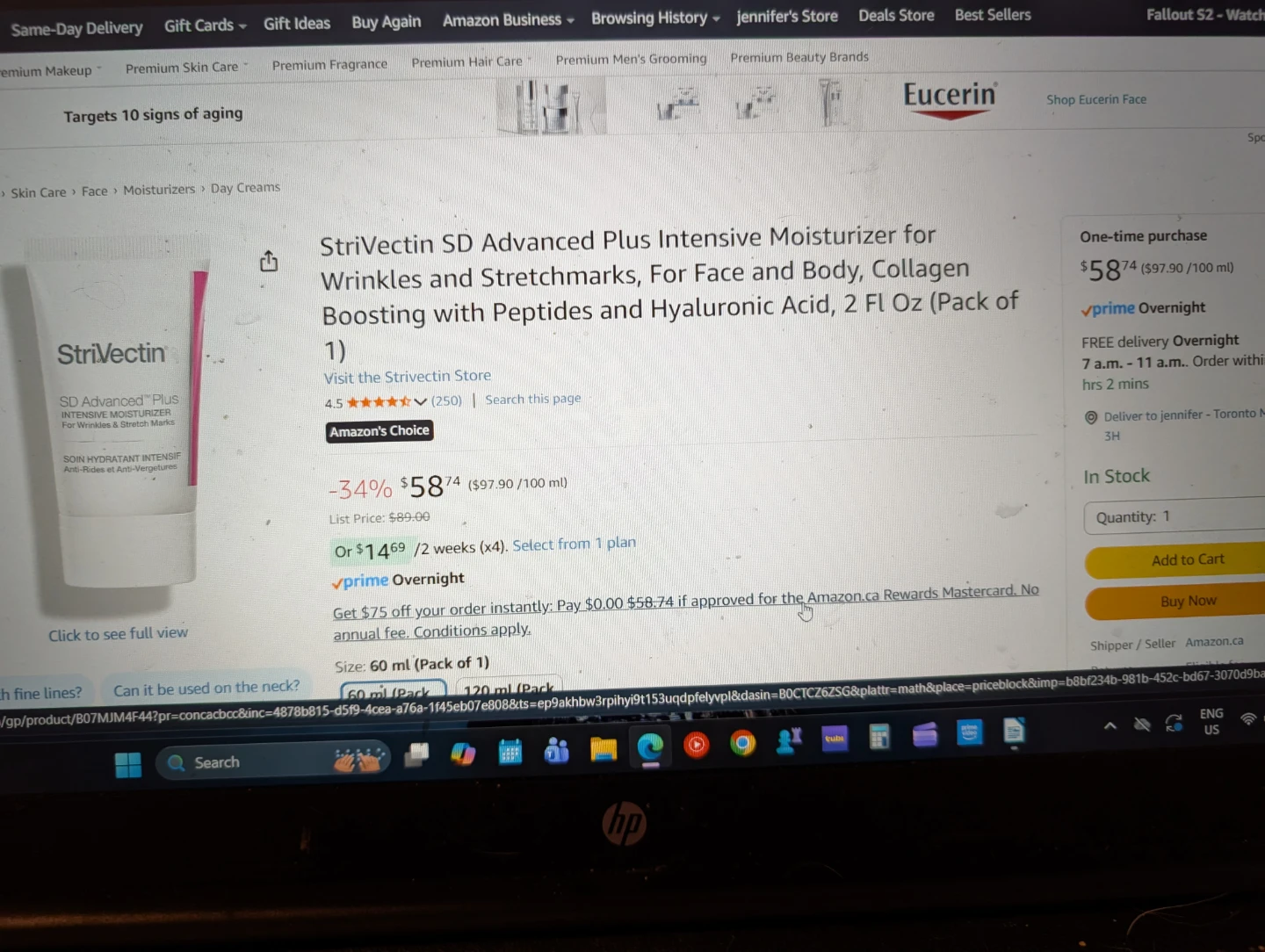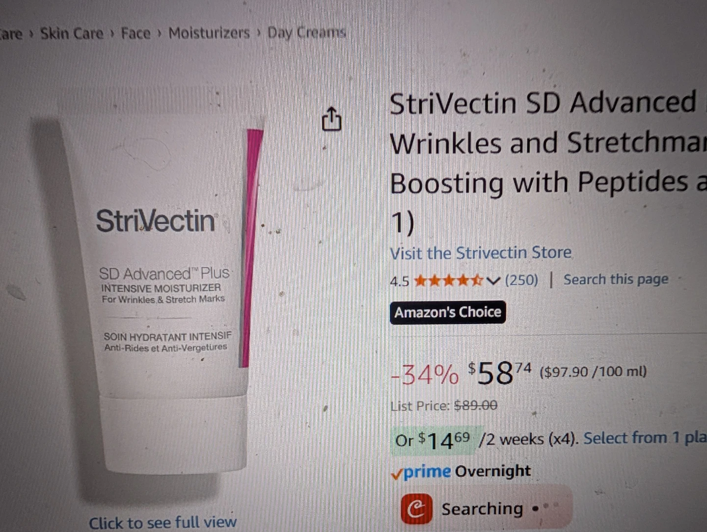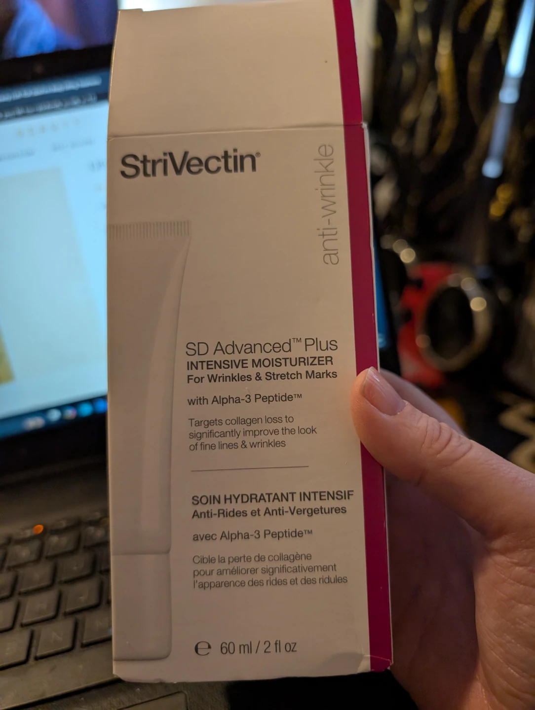 I'm selling a StriVectin SD Advanced Plus Intensive Moisturizer! It's designed for wrinkles and stretch marks. It's powered by Copper Tripeptide, Cranberry Biopeptides, and Alpha-3 Peptide to target natural collagen, elastin, and hyaluronic acid for radiant and youthful-looking skin. It's a revolutionary formula for skin that appears more supple, radiant and youthful-looking with visible results starting in just one week! It comes in a 60ml/2 fl oz container