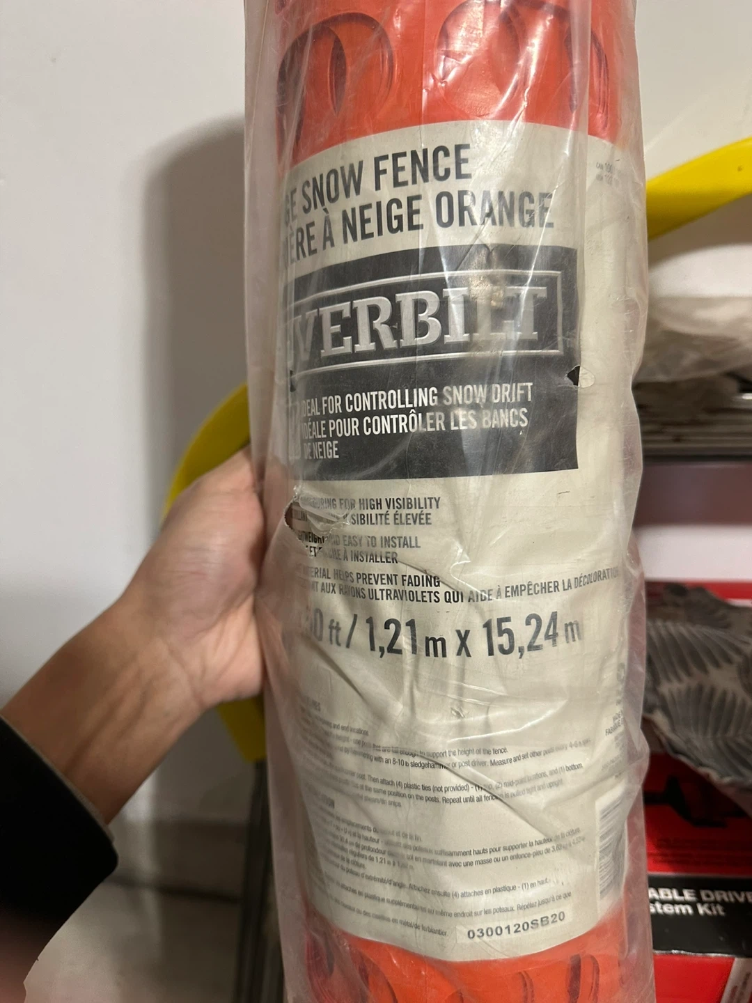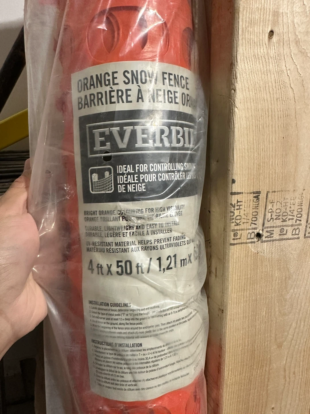 Selling an Everbilt orange snow fence. It's ideal for controlling snow drift and is bright orange for high visibility. It's durable, lightweight, and easy to install. The fence is UV-resistant material, helping prevent fading. Dimensions are 4 ft x 50 ft (1.21 m x 15.24 m)