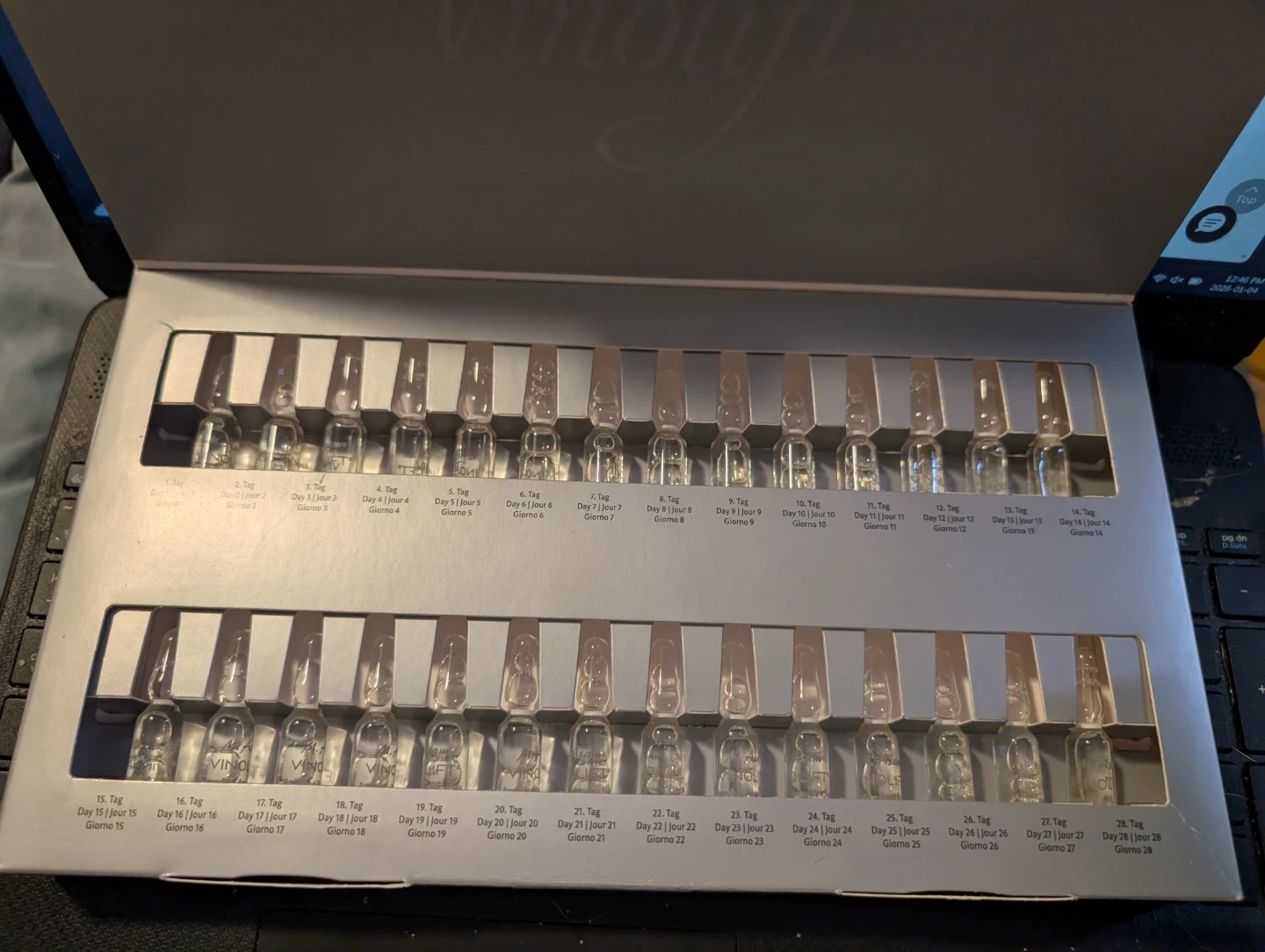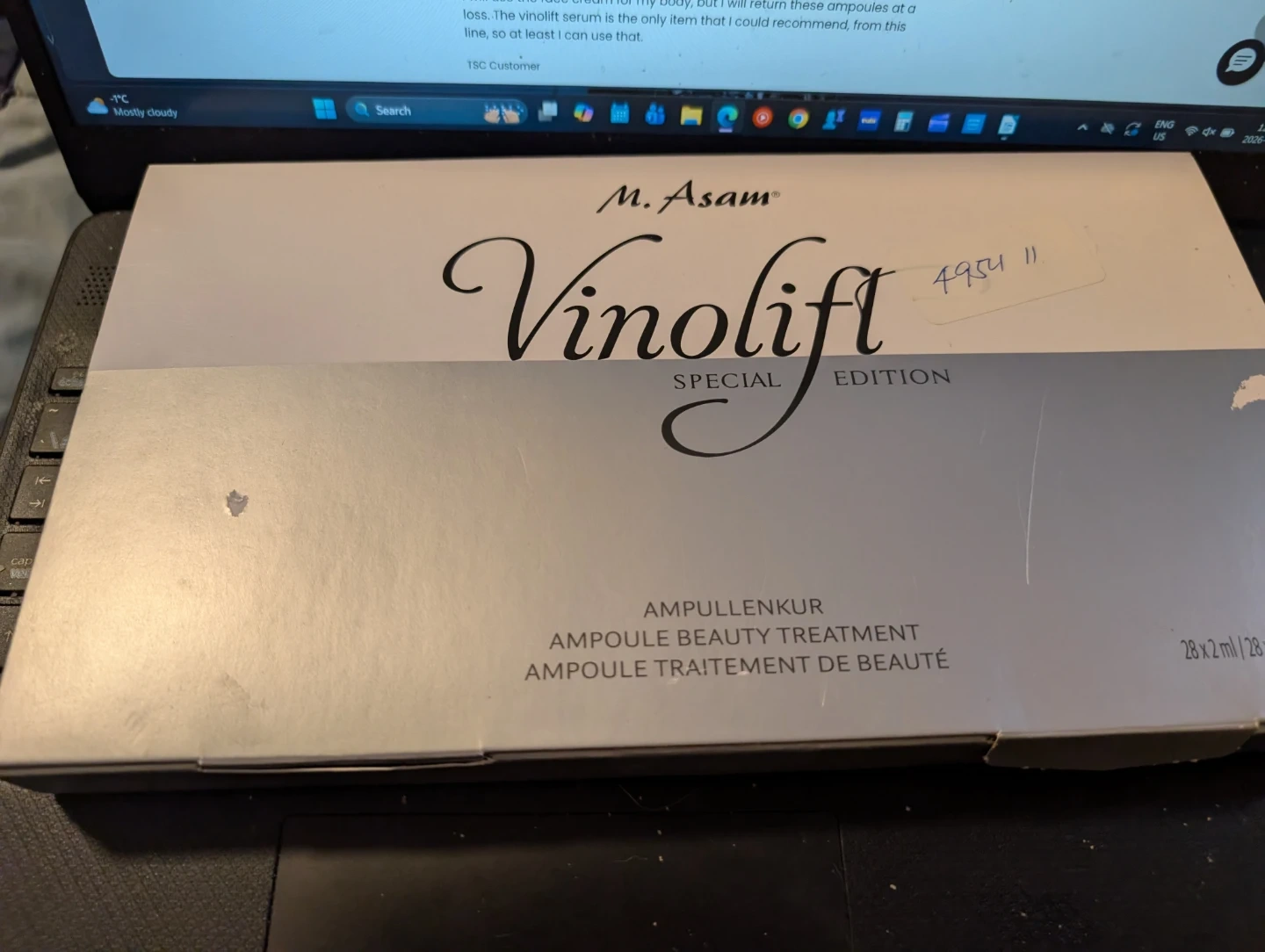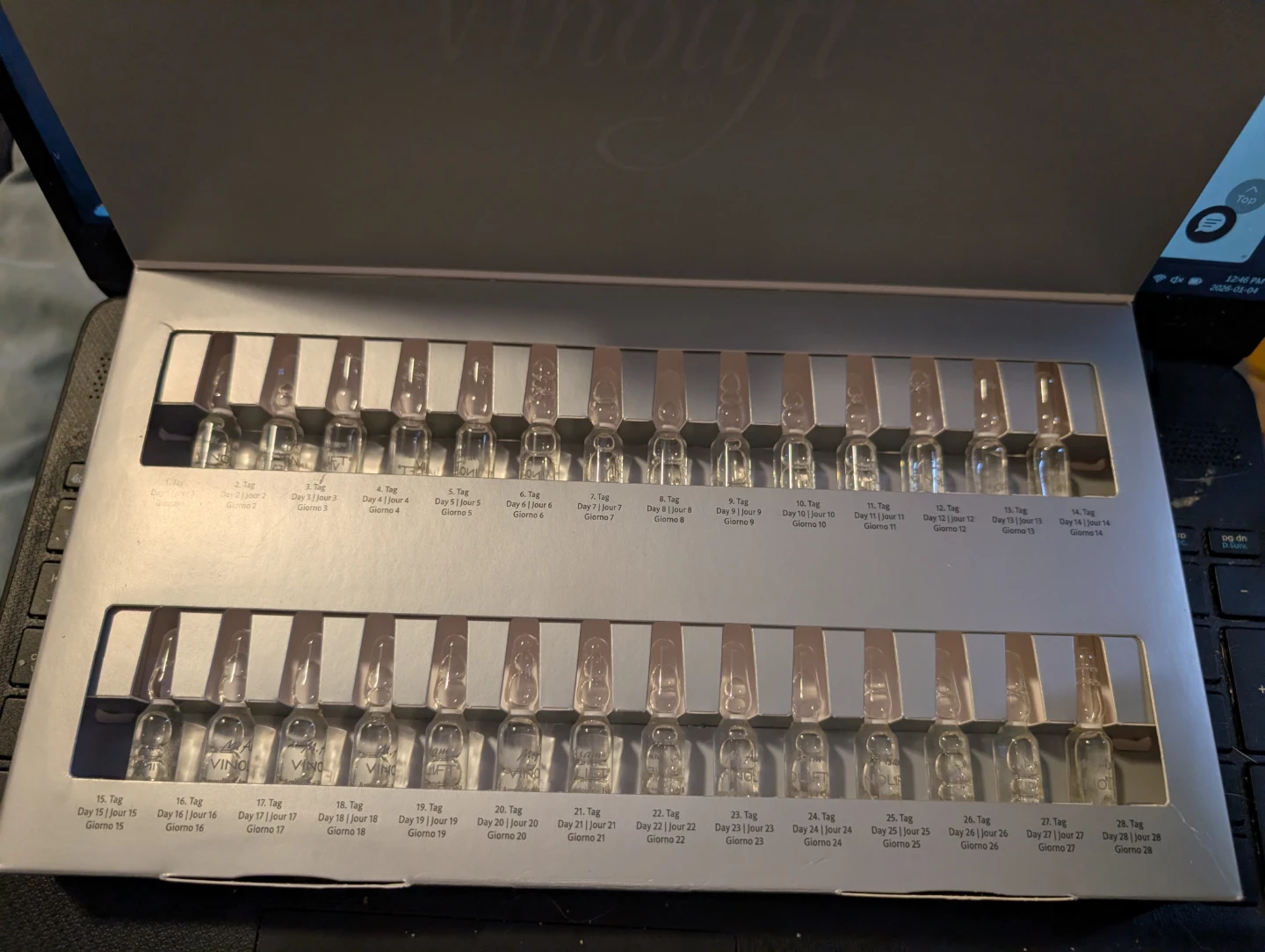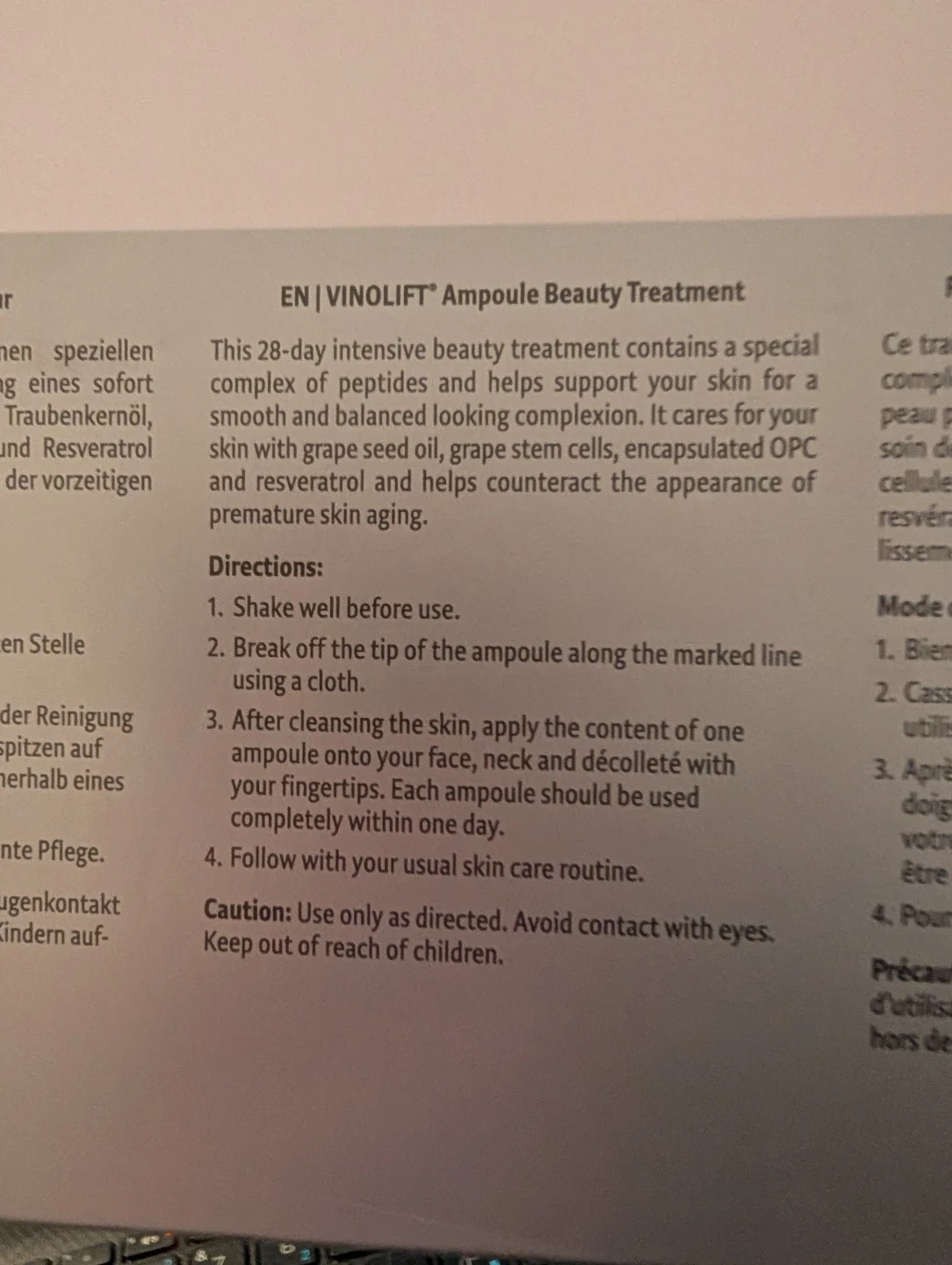 I'm selling a M. Asam Vinolift Ampoule Beauty Treatment. This is a 28-day intensive beauty treatment containing a special complex of peptides that helps support your skin. It cares for your skin with grape seed oil, grape stem cells, encapsulated OPC and resveratrol and helps counteract the appearance of premature skin aging