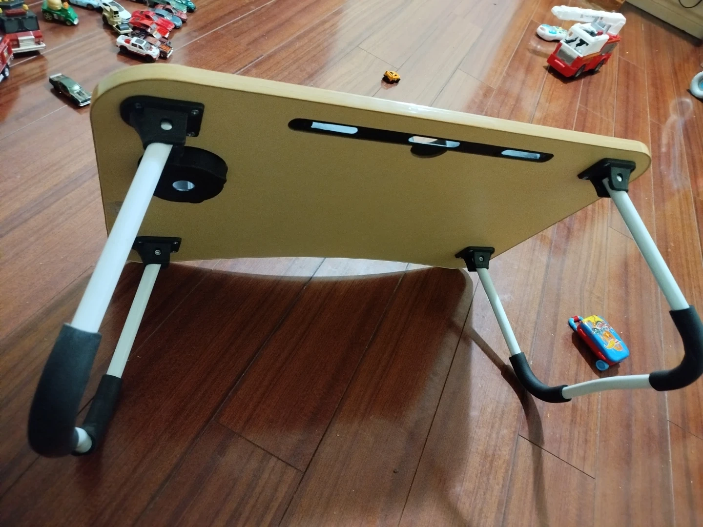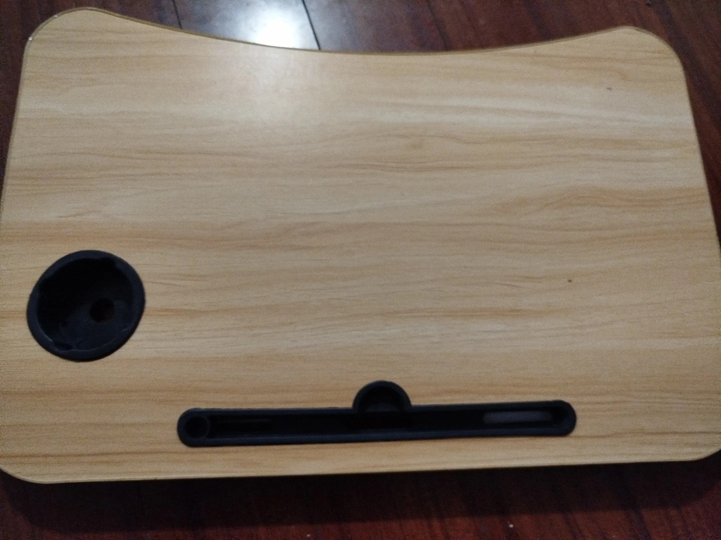 Selling a portable laptop bed desk table! It's perfect for working or relaxing in bed or on the couch. It has a convenient cup holder and a slot for your tablet or phone. Great for students or anyone who likes to work from home!