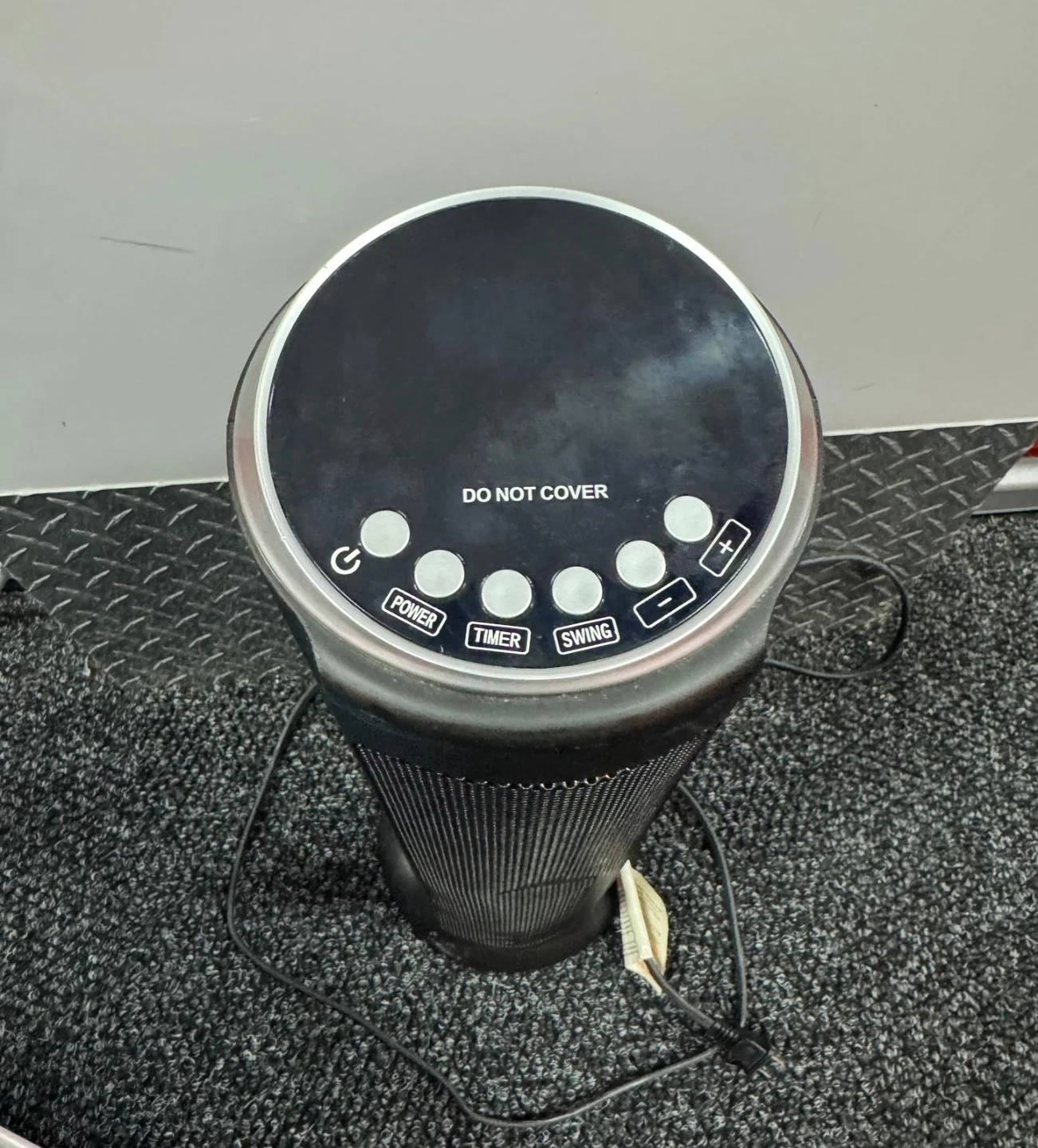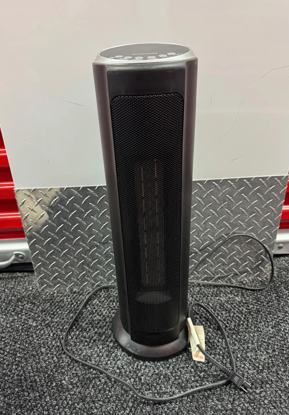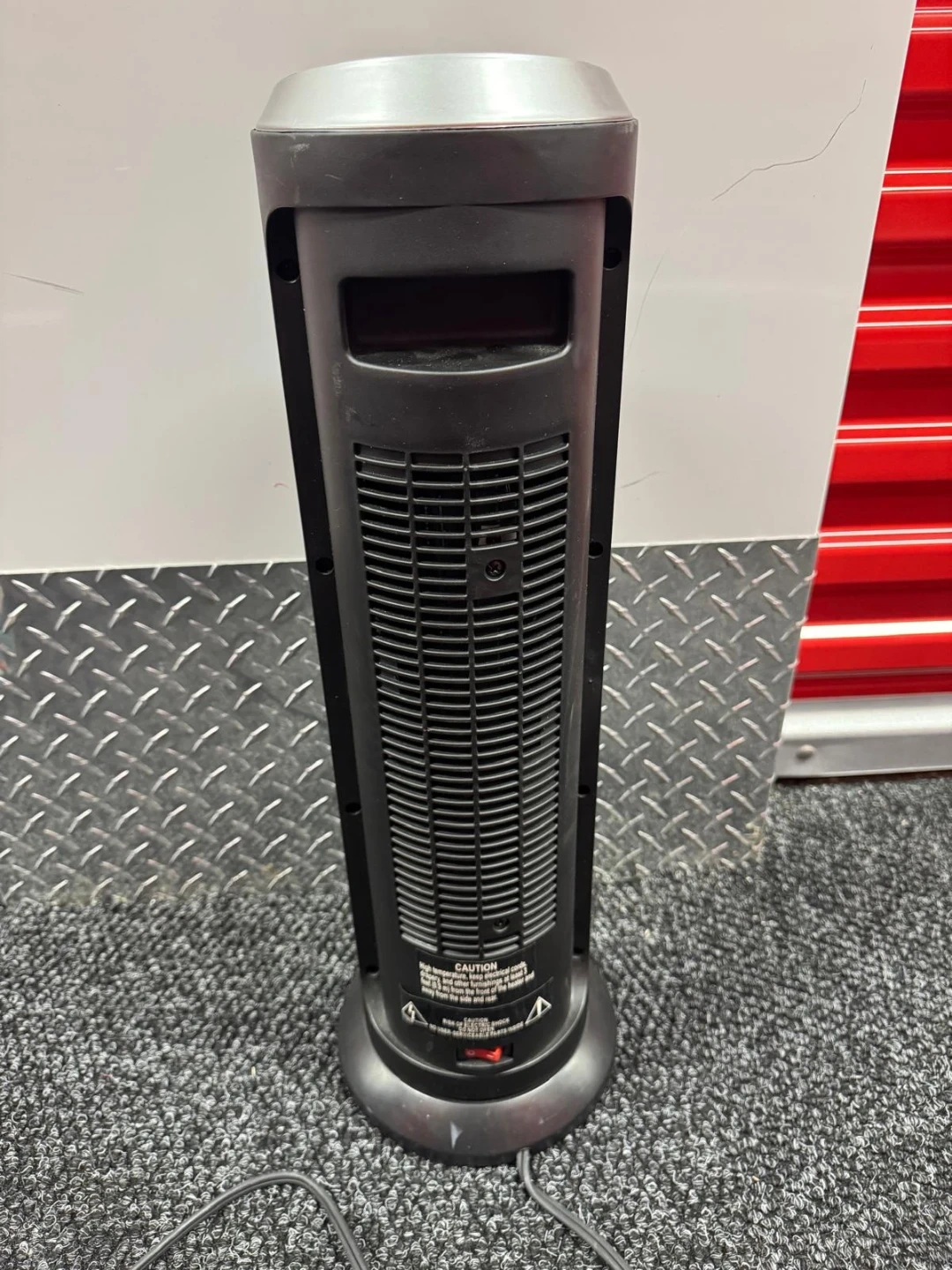 I'm selling a Lasko Oscillating Ceramic Tower Heater. It's black and in great condition! This heater is perfect for adding a little extra warmth to any room. It has power, timer, and swing settings. It's a great way to stay cozy!