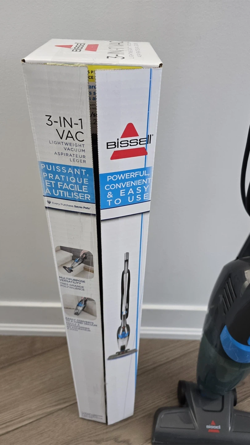 Selling a Bissell 3-in-1 Vac stick vacuum! It's lightweight and easy to use for quick cleanups. The box is included!