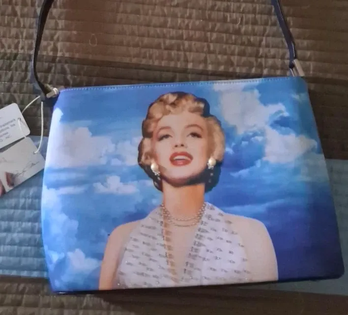 Here's a lovely Brand New purse featuring Marilyn Monroe! It's in mint condition and ready for a new owner. The bag has a blue sky background with a portrait of Marilyn. Perfect for any fan!
