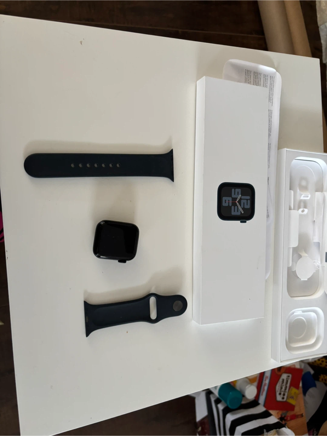 Selling an Apple Watch SE (2nd generation) in the 40mm size and Midnight colour! It comes with the original box and all included components. It's in a new condition, NEVER been used and ready for a new wrist!