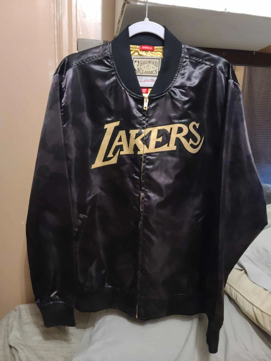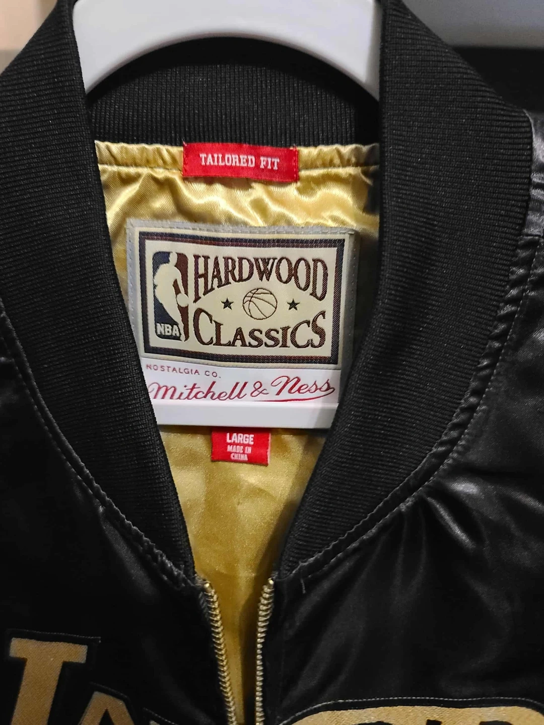 Selling a Mitchell & Ness Hardwood Classics Satin Camo grated special collectors edition Lakers jacket in size large! The jacket is black with gold accents and features the Lakers logo on the front. It's in great condition and perfect for any Lakers fan! Authentic !