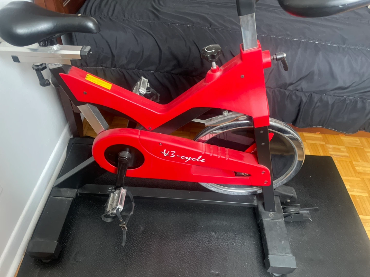 Selling a Bailih indoor cycling bike in red. It's in great shape and ready for a new owner to get some exercise at home! Perfect for staying active during the colder months.