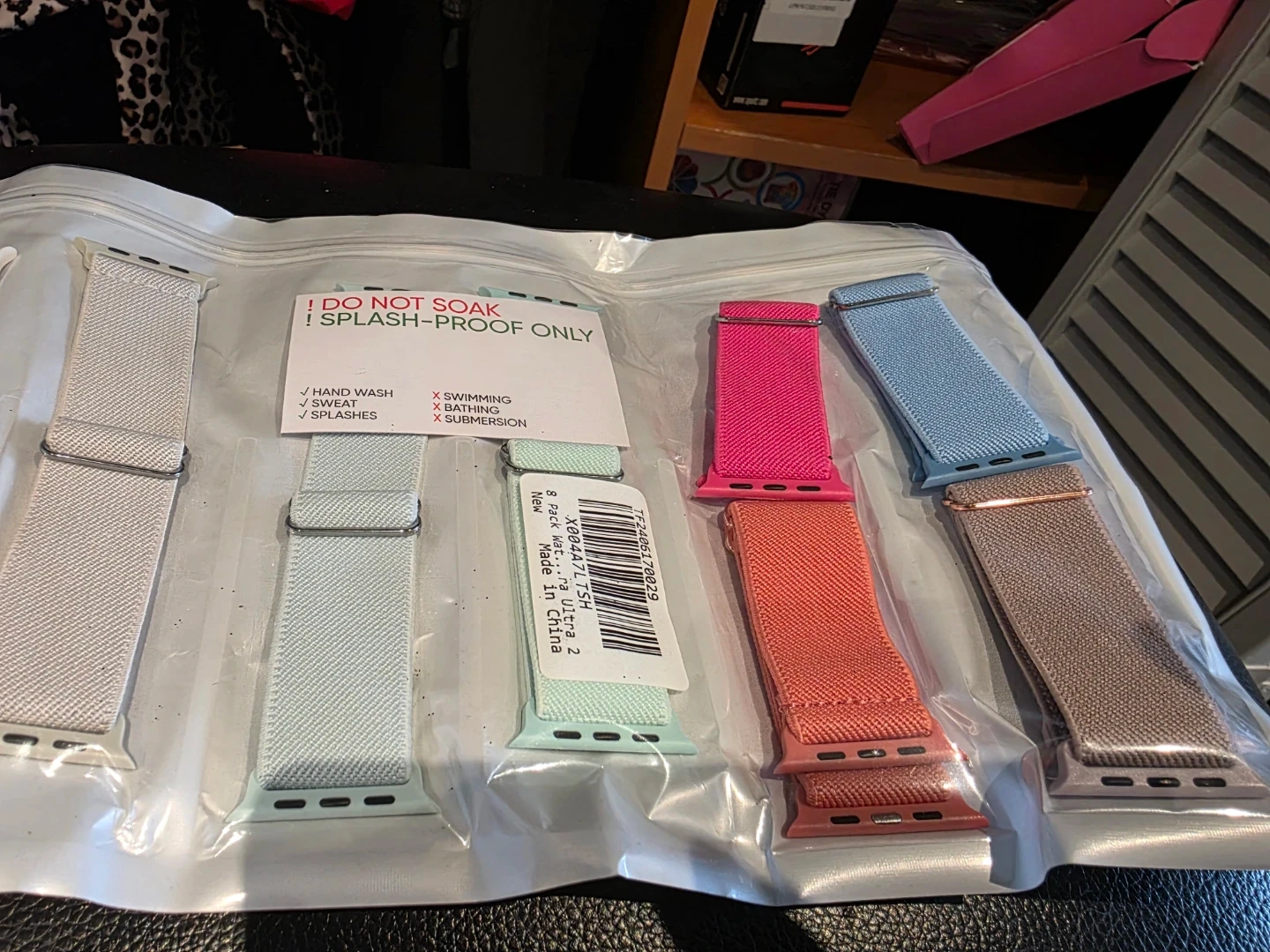 Selling a brand new 8-pack of Apple Watch Ultra bands! They're splash-proof and come in a variety of colours. Perfect for adding a pop of colour to your everyday look!