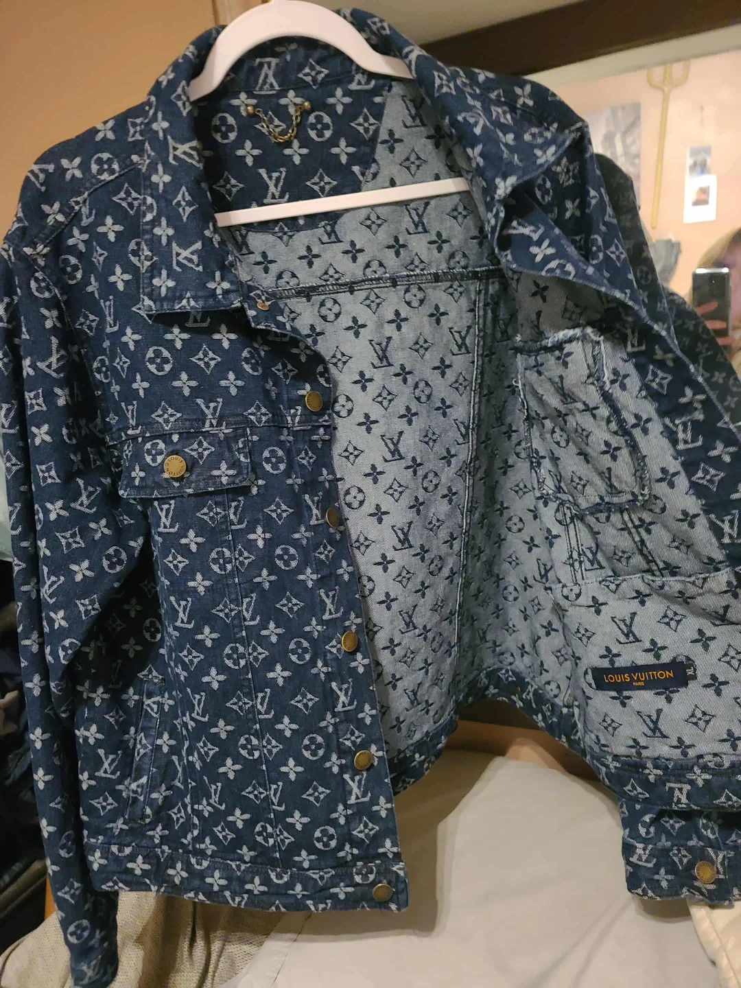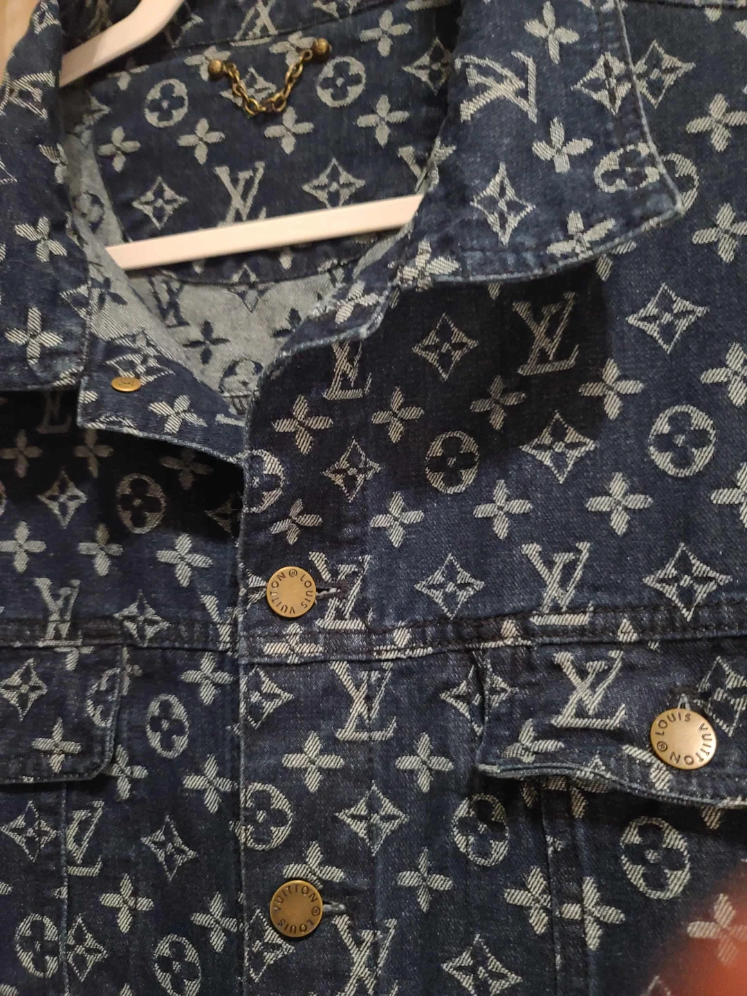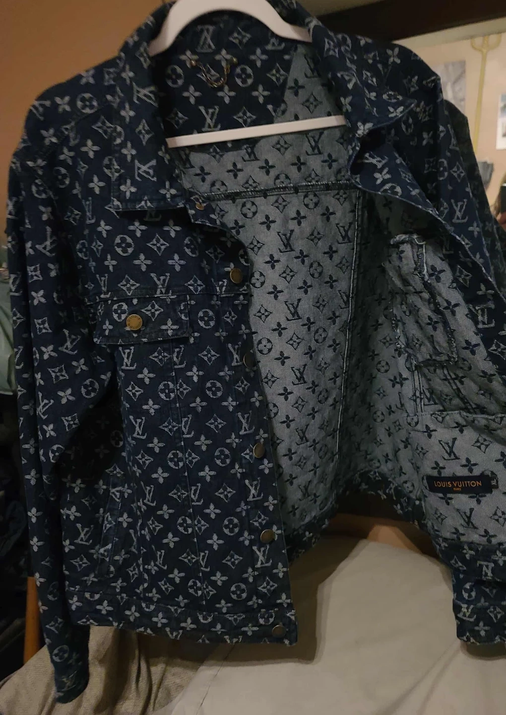 Selling a stylish Louis Vuitton denim jacket! It features the iconic LV monogram pattern throughout. The jacket has a classic cut and is made of durable denim material. Perfect for adding a touch of luxury to your everyday look!