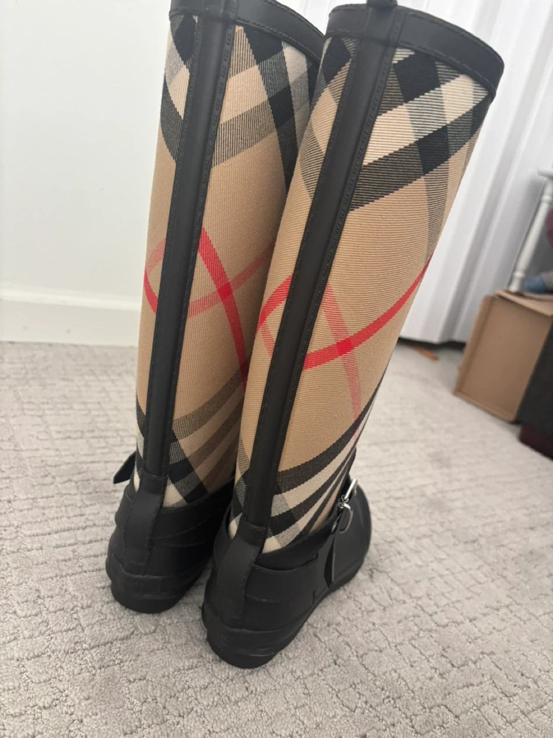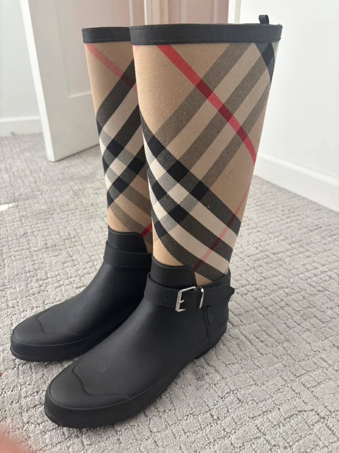 Selling a pair of Burberry rain boots in a classic check pattern! They are a size 39 and in great condition. Perfect for rainy days to keep your feet dry and stylish! No box