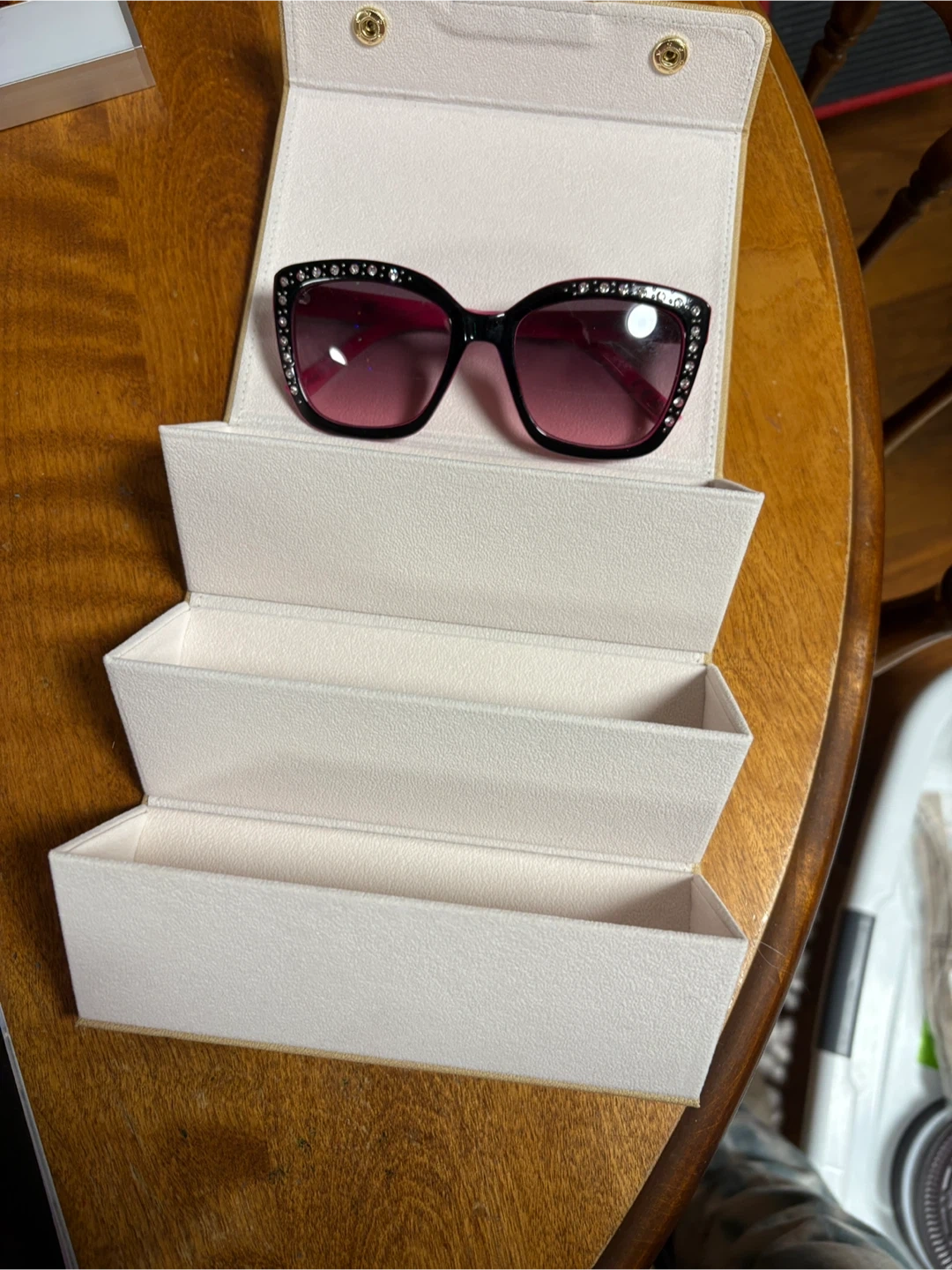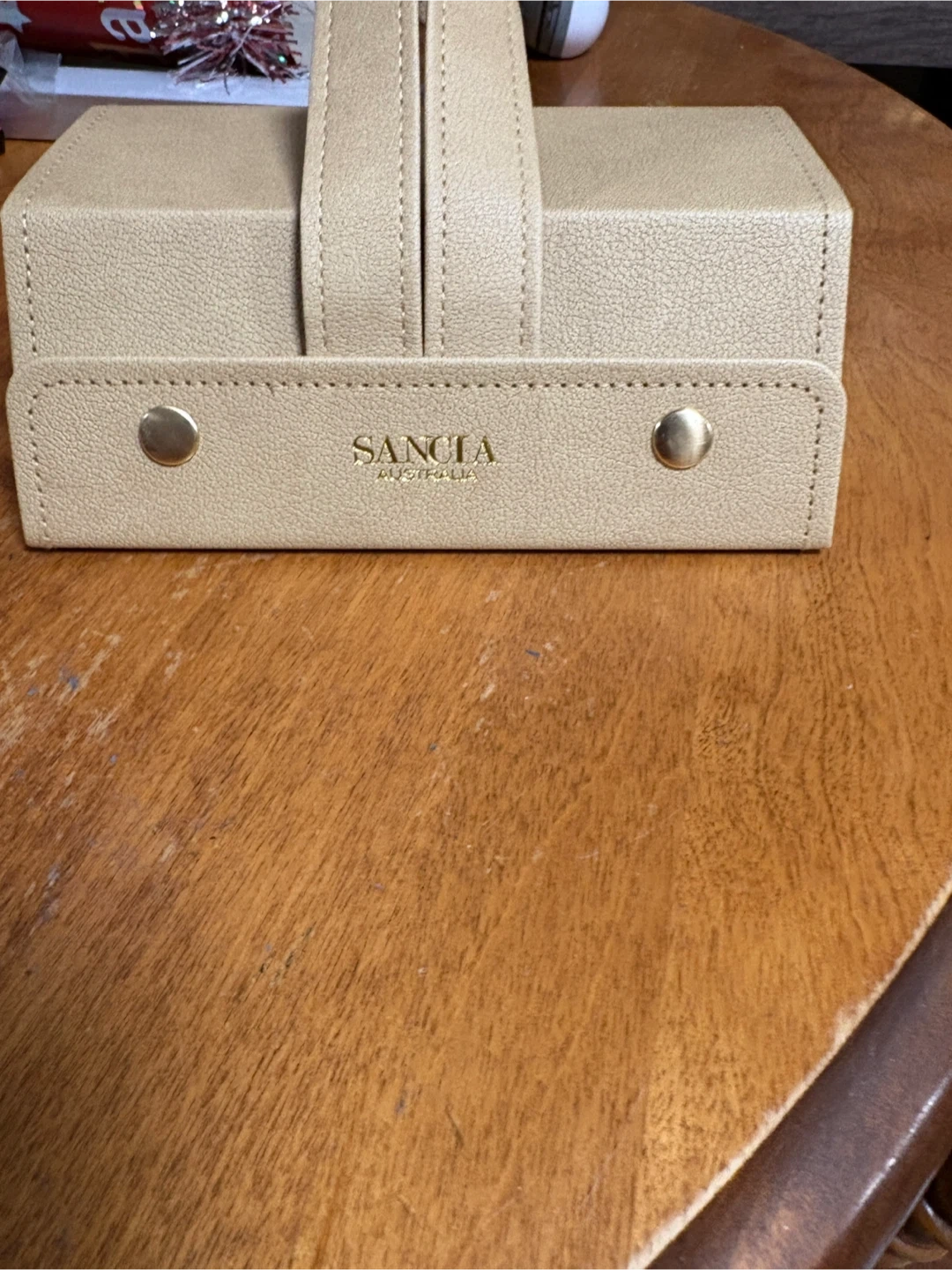 Sancia Australia sunglasses case. It's a stylish way to store and organize your sunglasses! The case is brand new never used, holds 3 pairs of glasses. Perfect for travel..