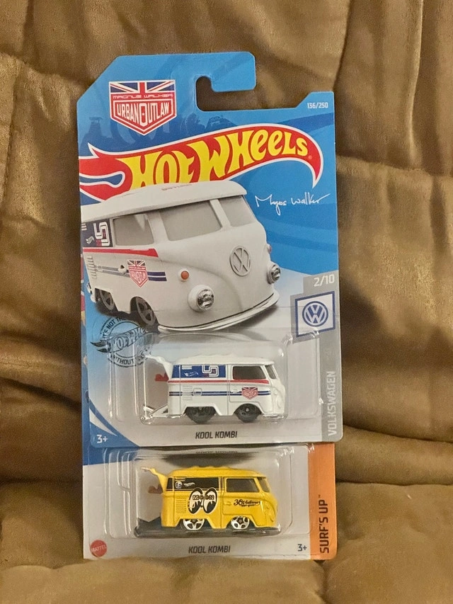 Here we have two Hot Wheels Kool Kombis for sale, still in their original packaging. These are new, untouched, and ready to find a new home with a collector or enthusiast. * Urban Outlaw Magnus Walker * Surf's Up If the ad is still up, then yes, it is still available!