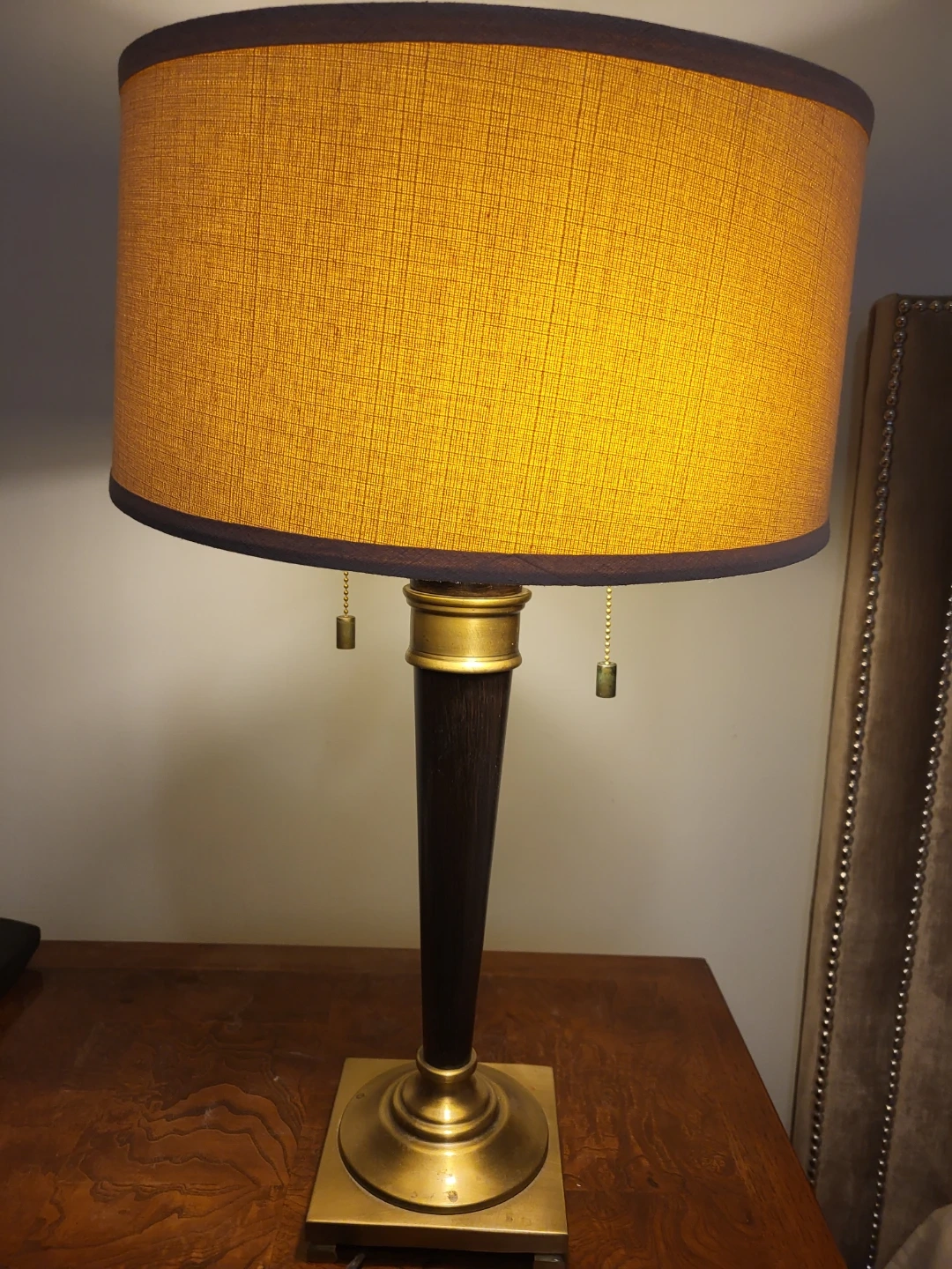 Selling two identical table lamps with a beige shade and wood and brass-look base. ( only one pictured.) They are in good condition and would look lovely as bedside lamps or in an elegant living room! $40 each or $70 for both.
