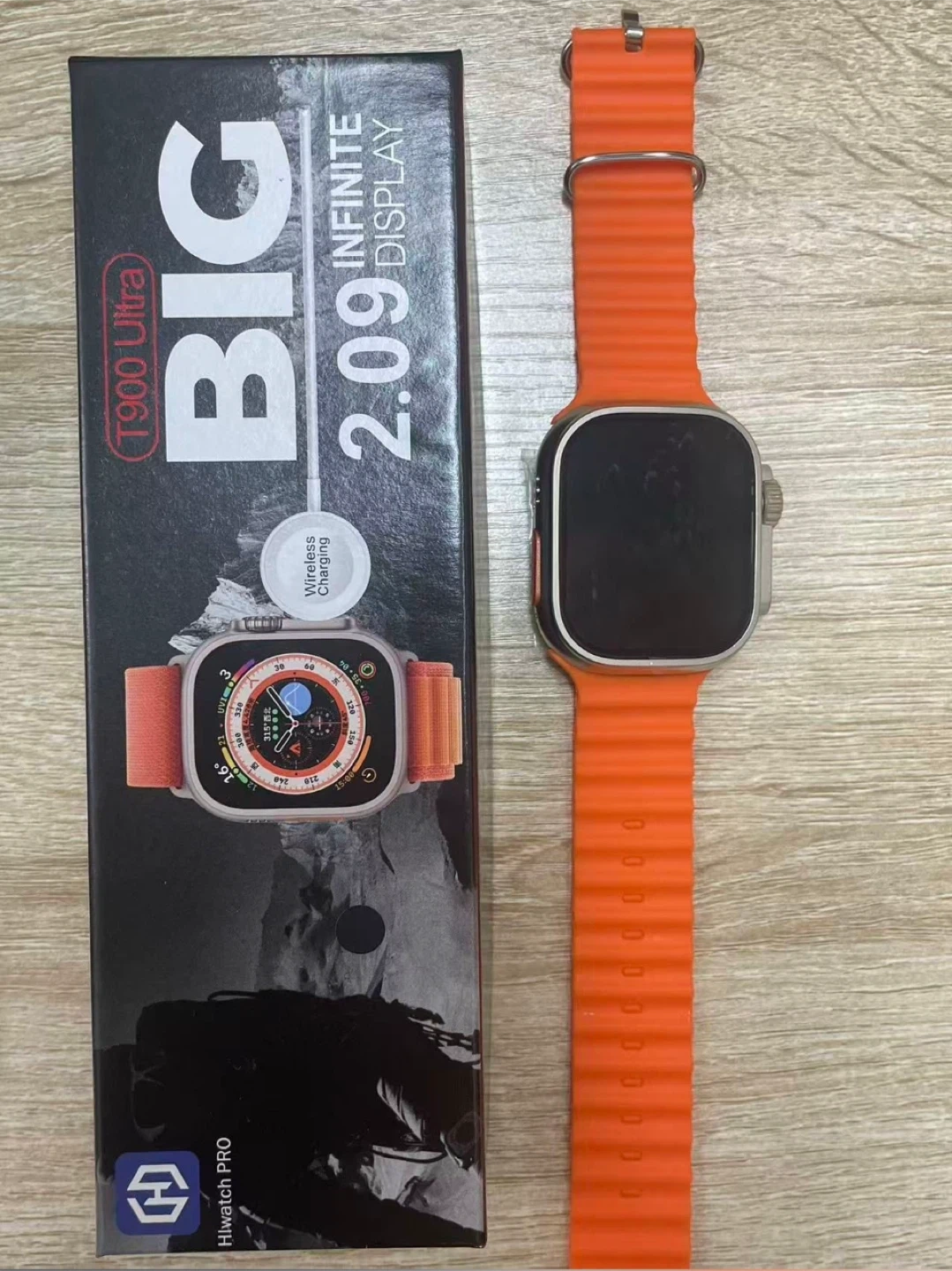 Selling a brand new T900 Ultra BIG smartwatch with a 2.09 inch infinite display! It comes in a vibrant orange colour and includes wireless charging capabilities. The watch comes with its original box, ready for a new user!