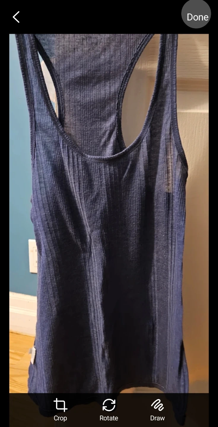 Selling a navy blue tank top. It's in great condition and has a ribbed texture! Perfect for layering or wearing on its own during warmer weather
