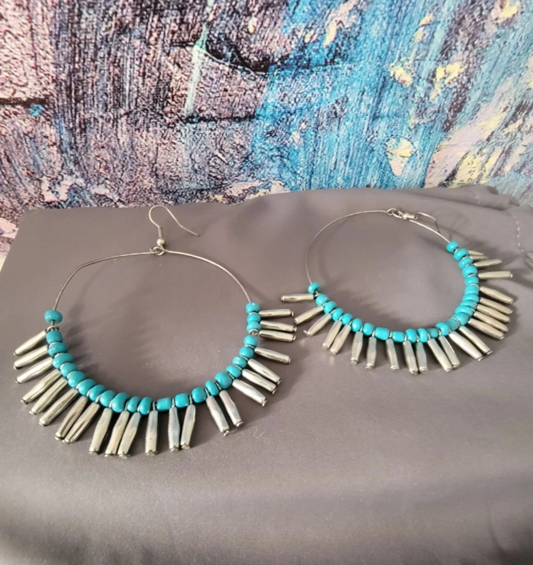 Giving away these cute turquoise beaded hoop earrings. They're in great condition and would be a lovely addition to any outfit!
