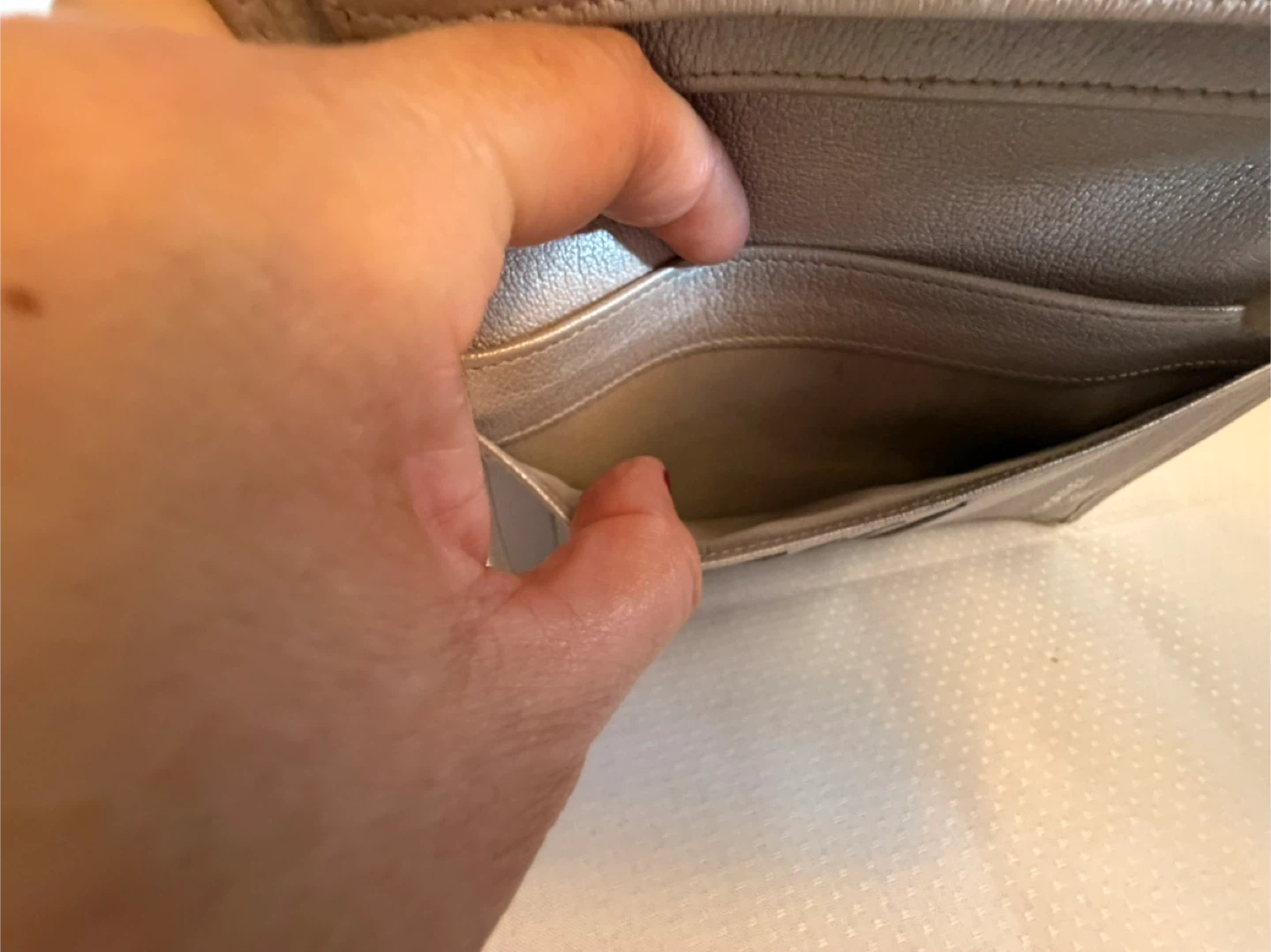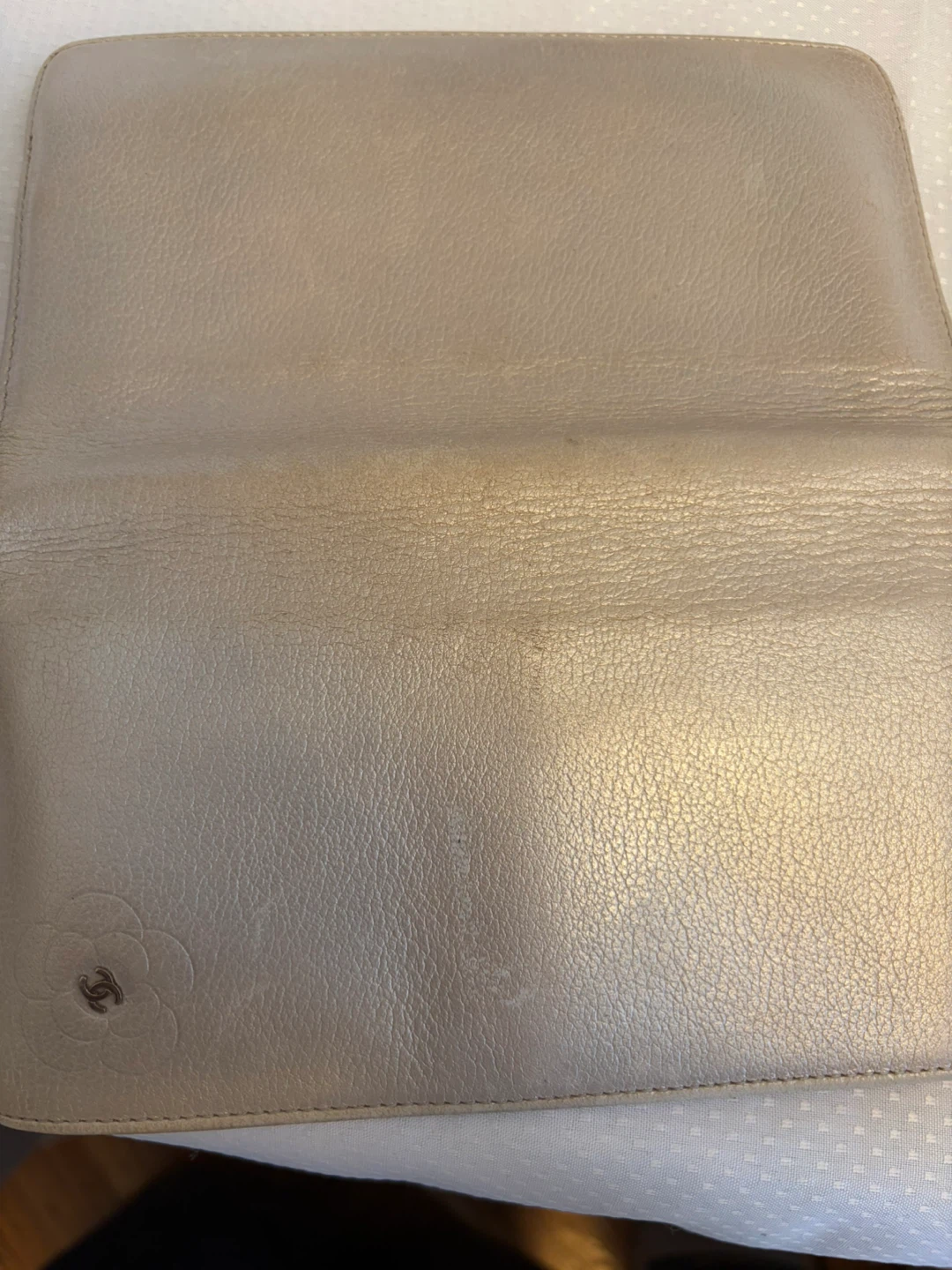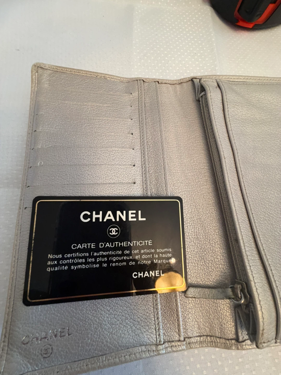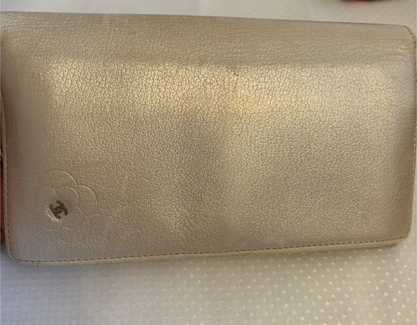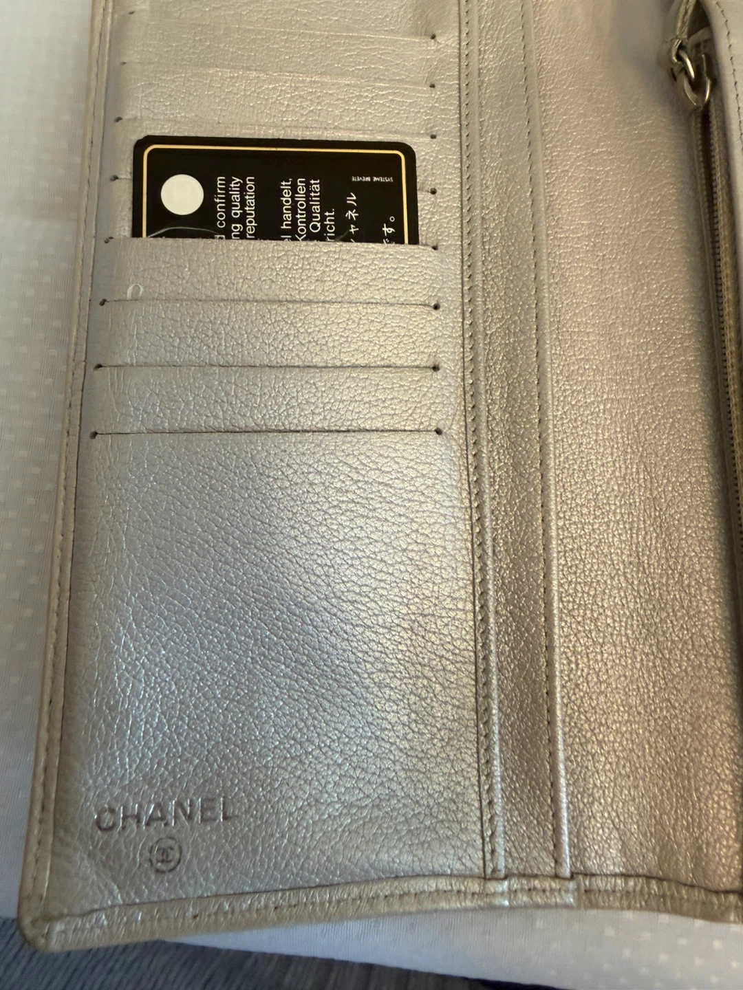 Selling a Chanel wallet. It's in good condition. Please check the photos. Gold it comes with certificate of authenticity . Signs of wear