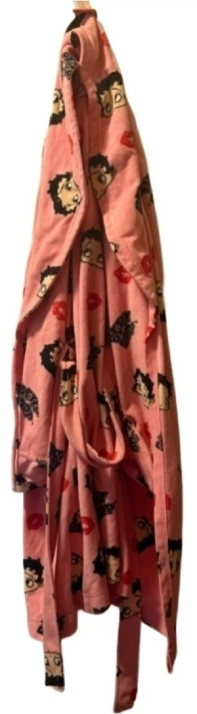 Turn up the charm with this soft pink fleece robe featuring Betty Boop’s iconic pout and playful red lips. Lounge-ready and full of sass, it’s perfect for gifting, relaxing, or adding a pop of retro glam to your cozywear lineup. Size Medium.