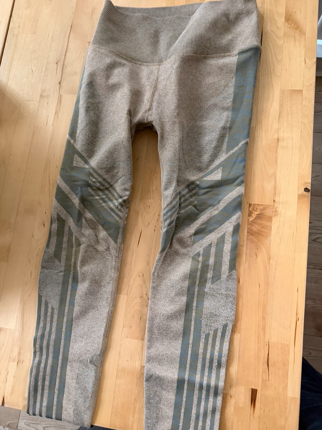Giving away two pairs of leggings as it doesn’t fit me well. Size small, fits 25-27” waist. Worn only a few times (pet free, smoke free environment). In very good condition.