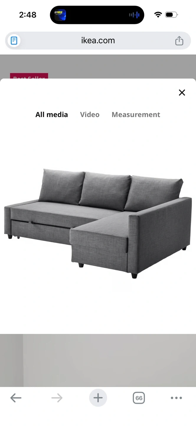 Selling a grey corner sofa bed from IKEA. It's in great condition and ready for a new home. Perfect for small spaces or as an extra bed for guests! The sofa bed is grey and made of a durable material. It's a stylish and functional piece of furniture for any home