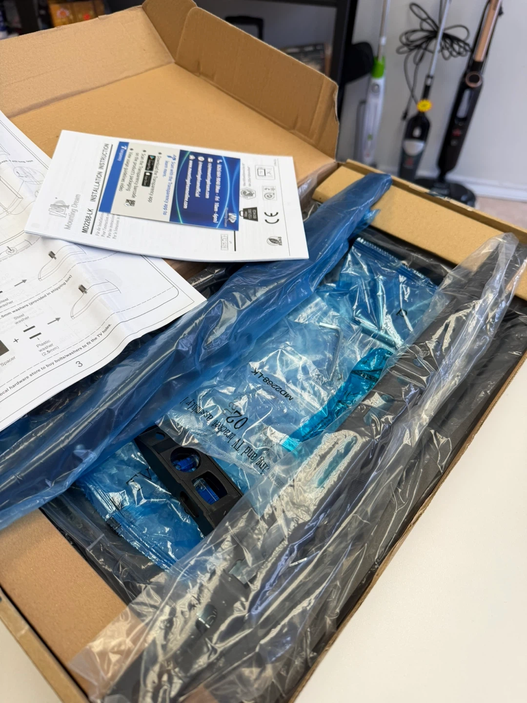 Selling a Mounting Dream tilting TV wall mount, model MD2268-LK. It's brand new in the box and ready to be installed. It supports TVs from 37"-75" and features a double hook design and pull-down straps to lock your TV in place. Box dimensions are 17.1x9.0x2.8in/435x228x71mm