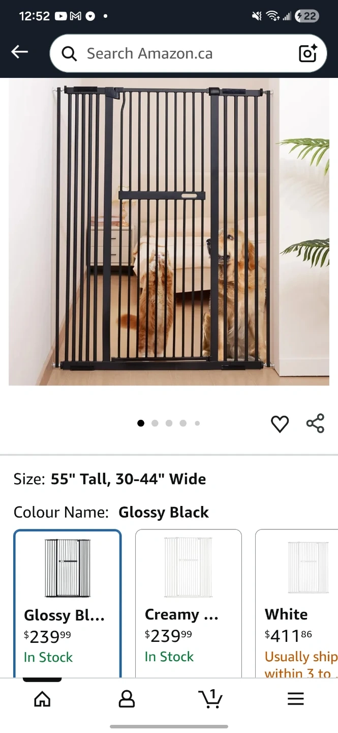 Selling a glossy black baby gate! It's 55" tall and adjustable from 30-44" wide. A great way to keep the little ones (or furry friends) safe and sound!