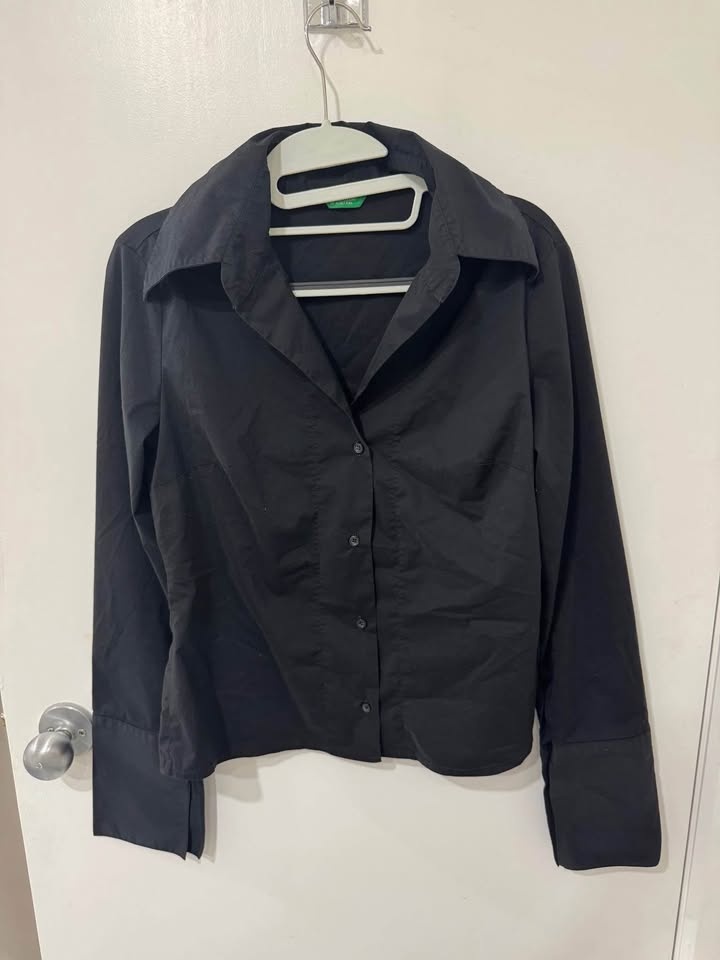 Perfect condition, black long sleeve button up with v neck. Super cute but a bit too tight on me. Size small, would best fit a size 4/6!