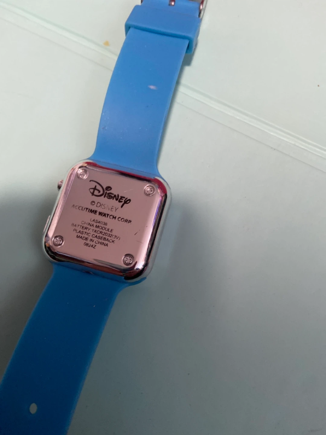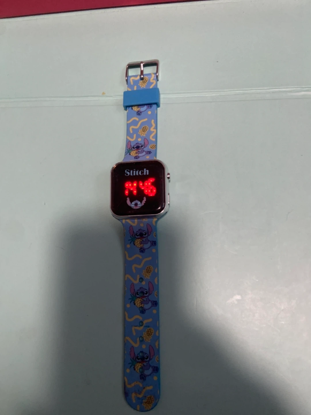 Selling a cute Disney Stitch digital watch for kids! The watch features a light blue band with Stitch and pineapple designs. It's in great condition and ready for a new wrist