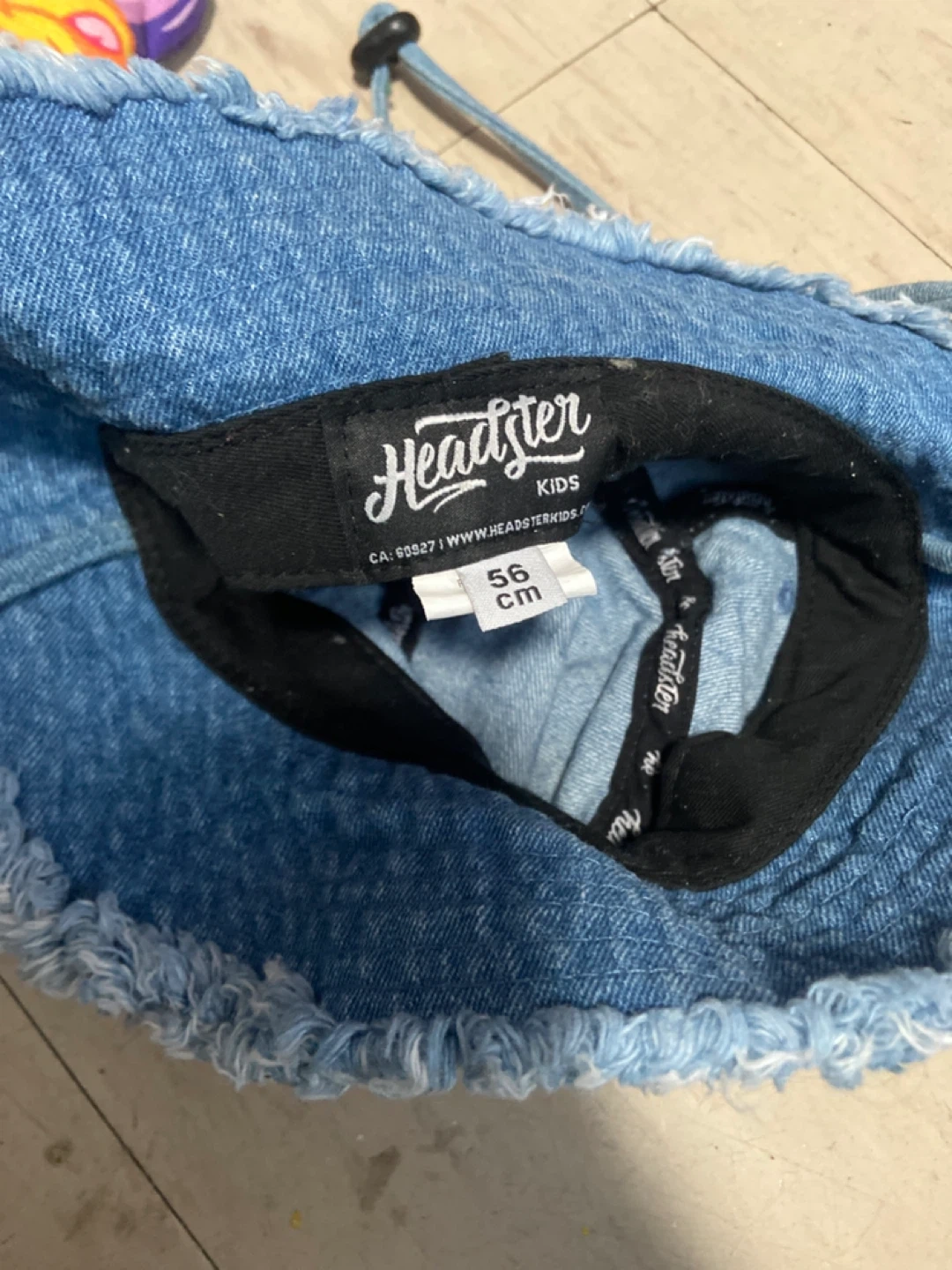 Check out this cute denim bucket hat from Headster Kids! It's in great condition and the size is 56 cm. Perfect for keeping your little one stylish and protected from the sun