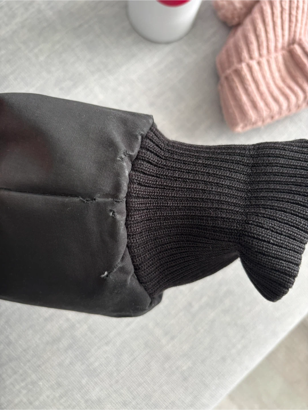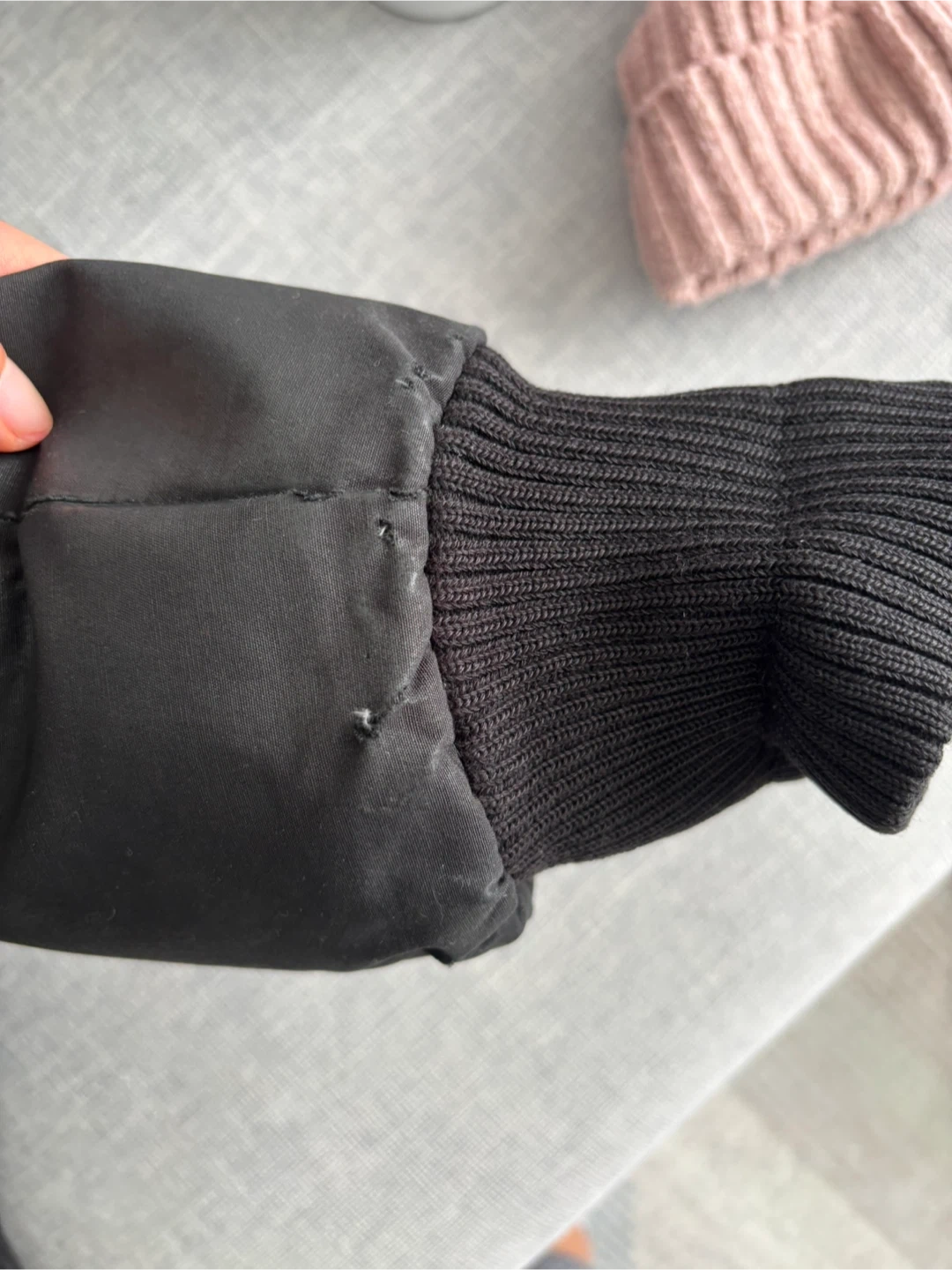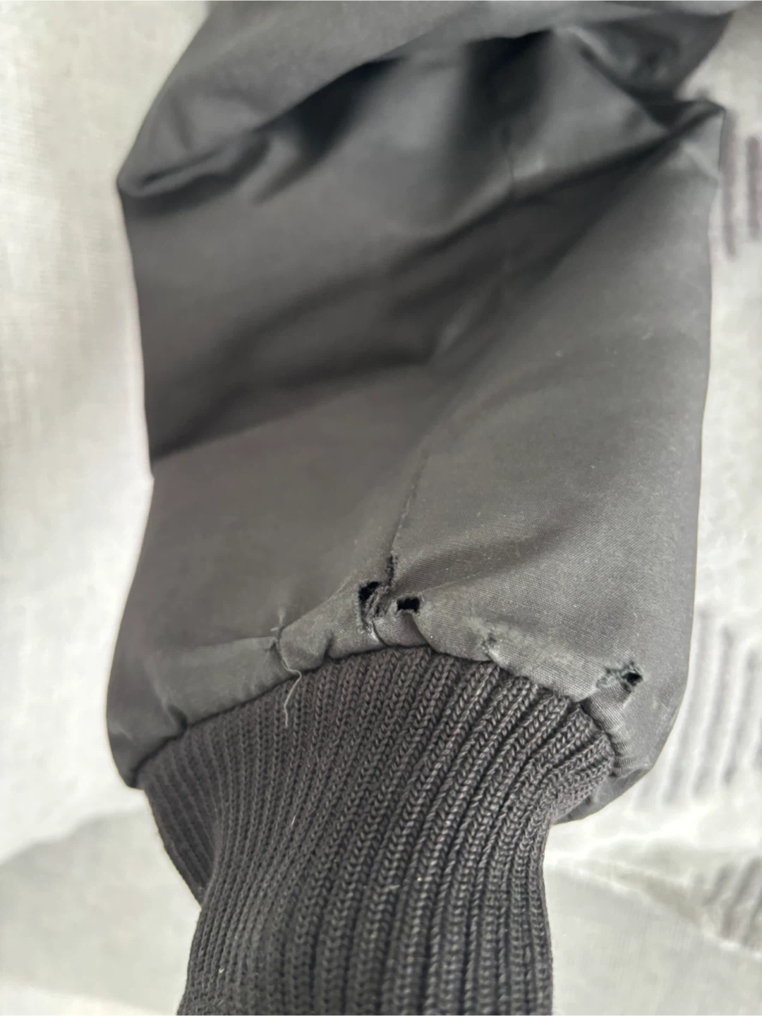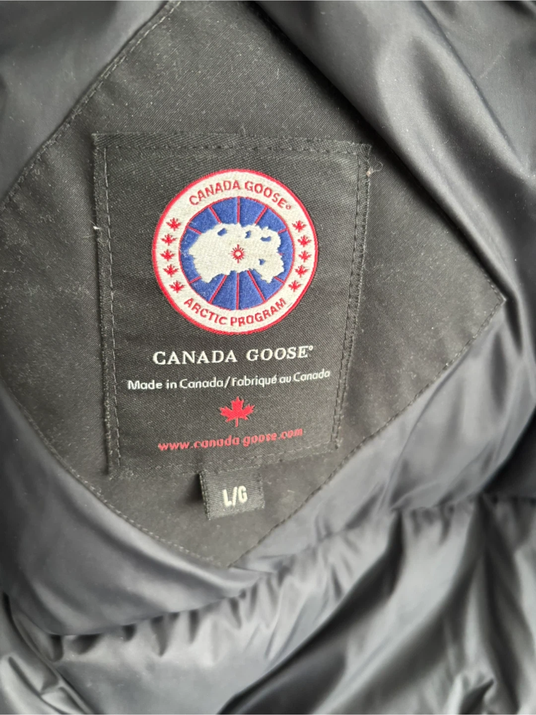 Selling a Canada Goose bomber jacket in black. There are some signs of wear on the sleeve, as shown in the pictures. It's still a great jacket for keeping warm during the colder months!