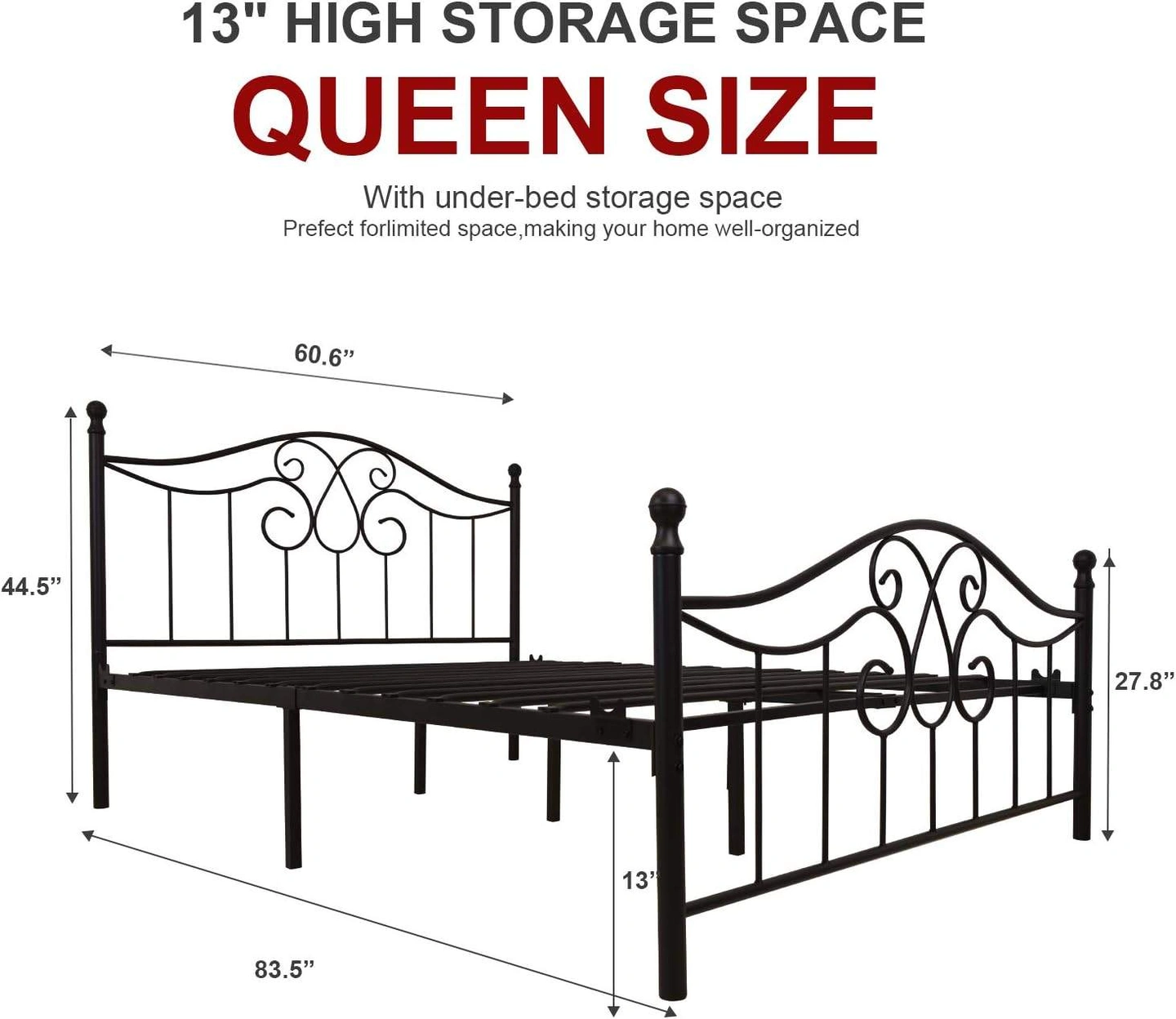 Vintage Sturdy Metal Bed Frame, Queen Size