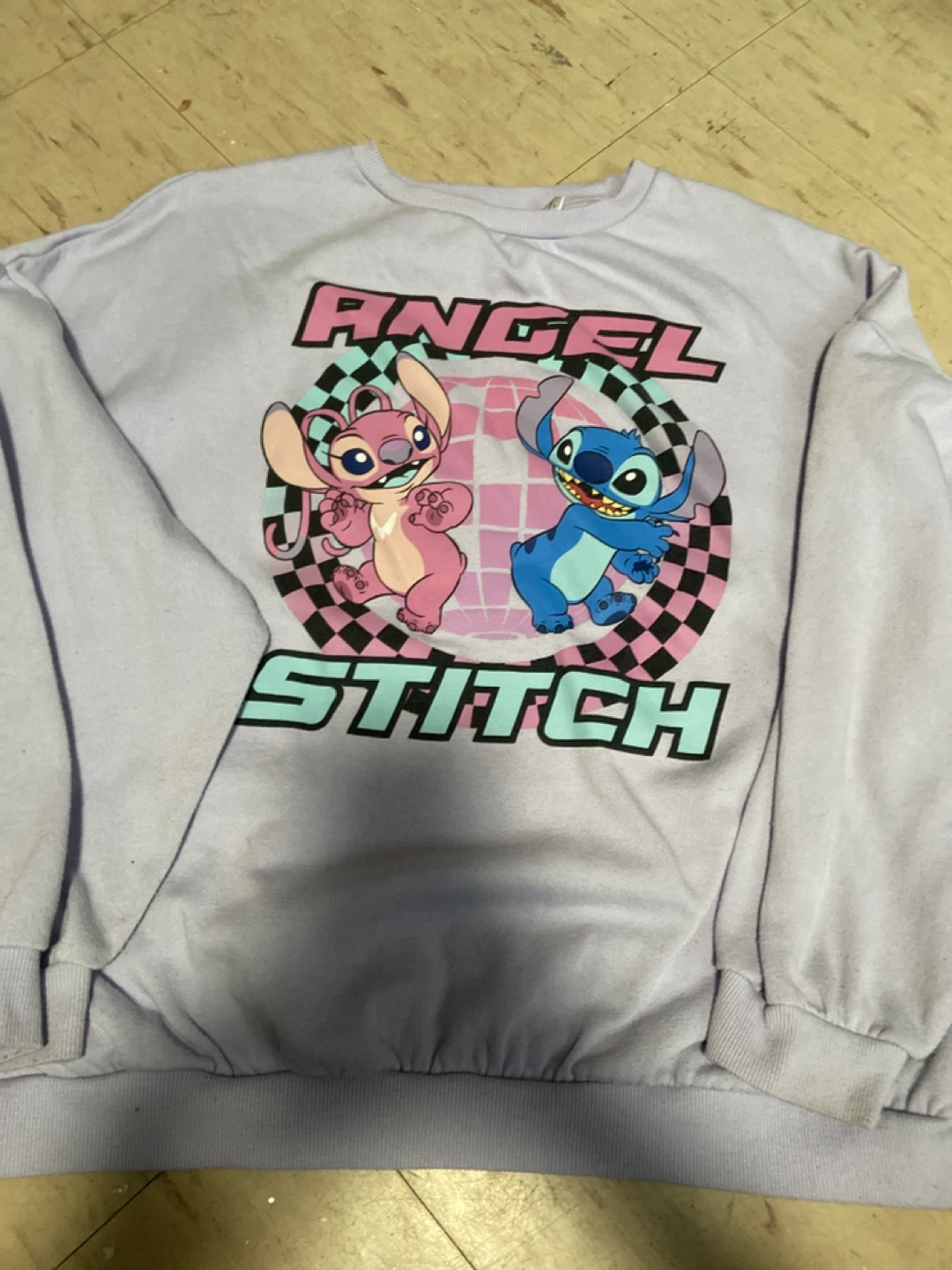 Selling a cute lavender sweatshirt with Angel and Stitch on the front! It's in great condition and ready for a new owner