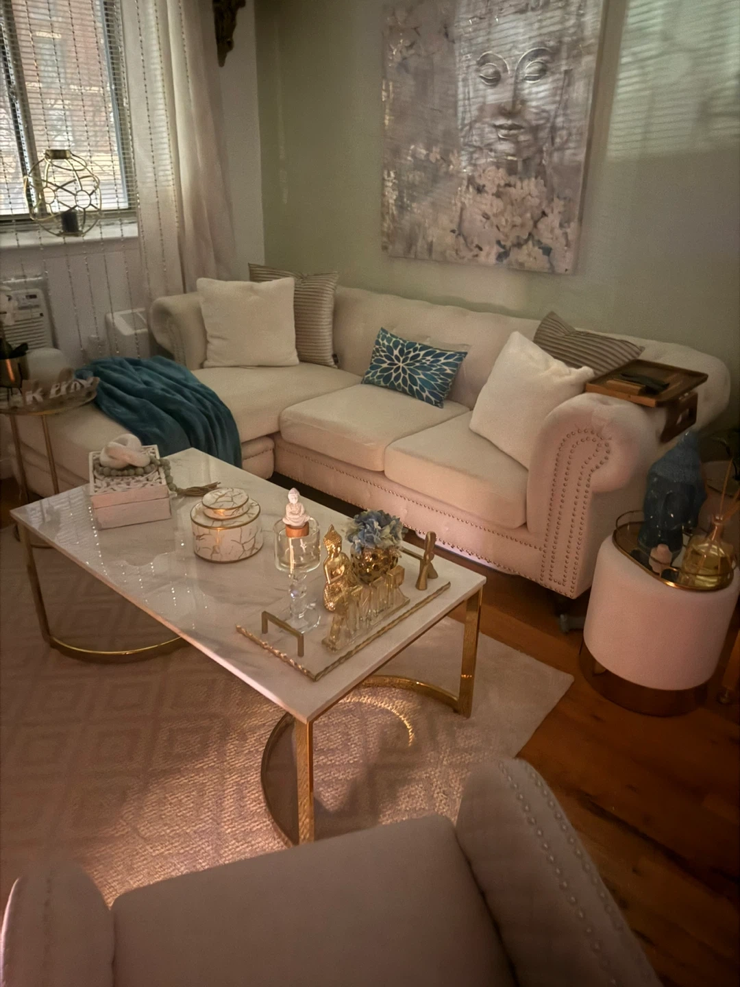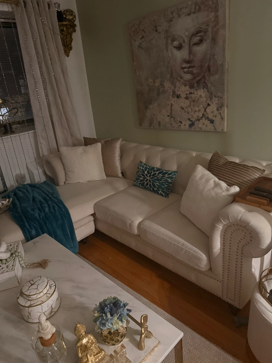 Selling a comfy and stylish white sectional sofa! It's in great shape and would look lovely in any living room. Perfect for lounging and adding a touch of elegance to your space. Feel free to reach out if you're interested!