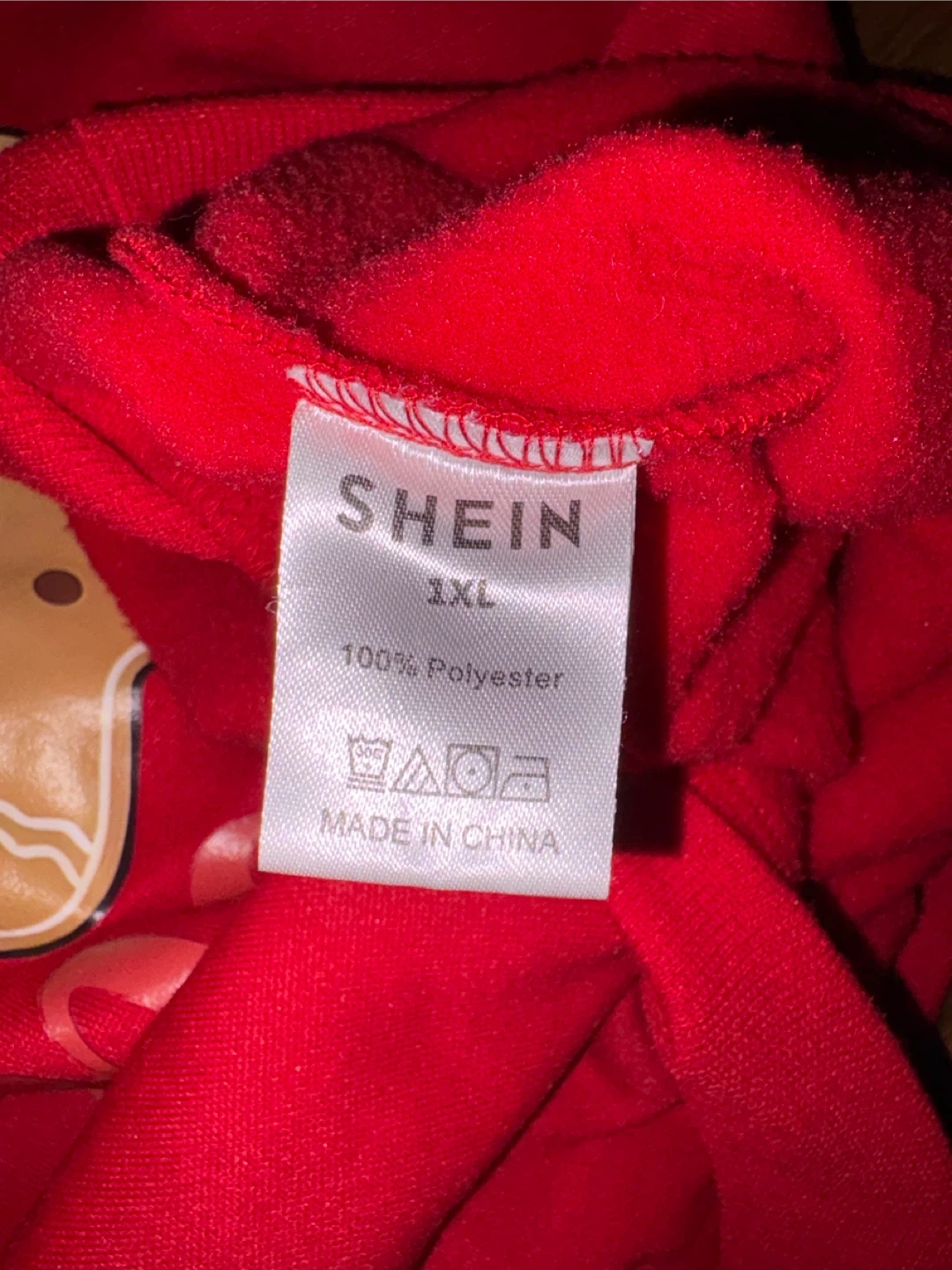 Cozy red Christmas sweater from SHEIN! It's a size 1XL and made of 100% polyester. Perfect for the holiday season!