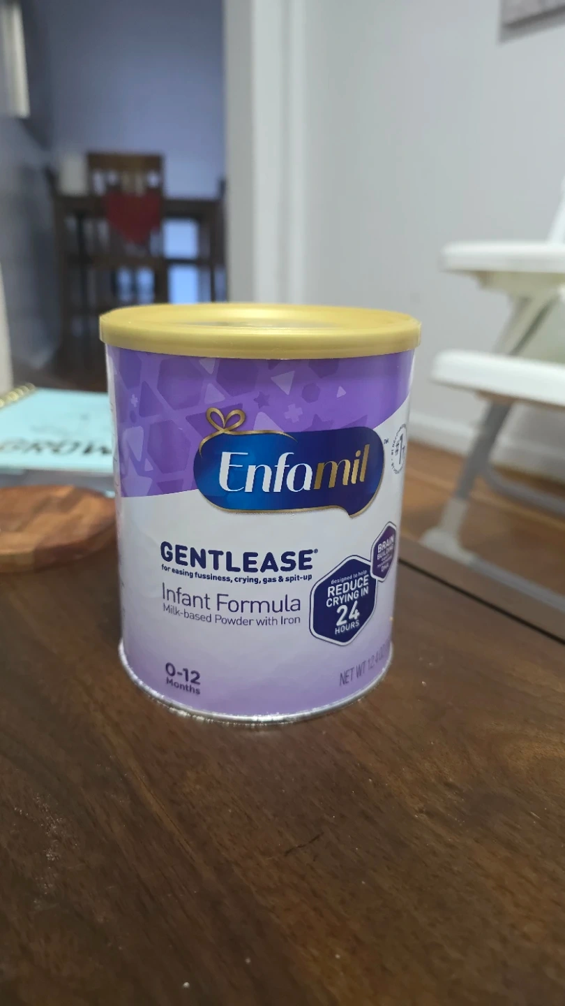 Selling a can of Enfamil Gentlease Infant Formula. It is milk-based powder with iron and is suitable for babies aged 0-12 months. It is designed for easing fussiness, crying, gas, and spit-up. It also reduces crying in 24 hours