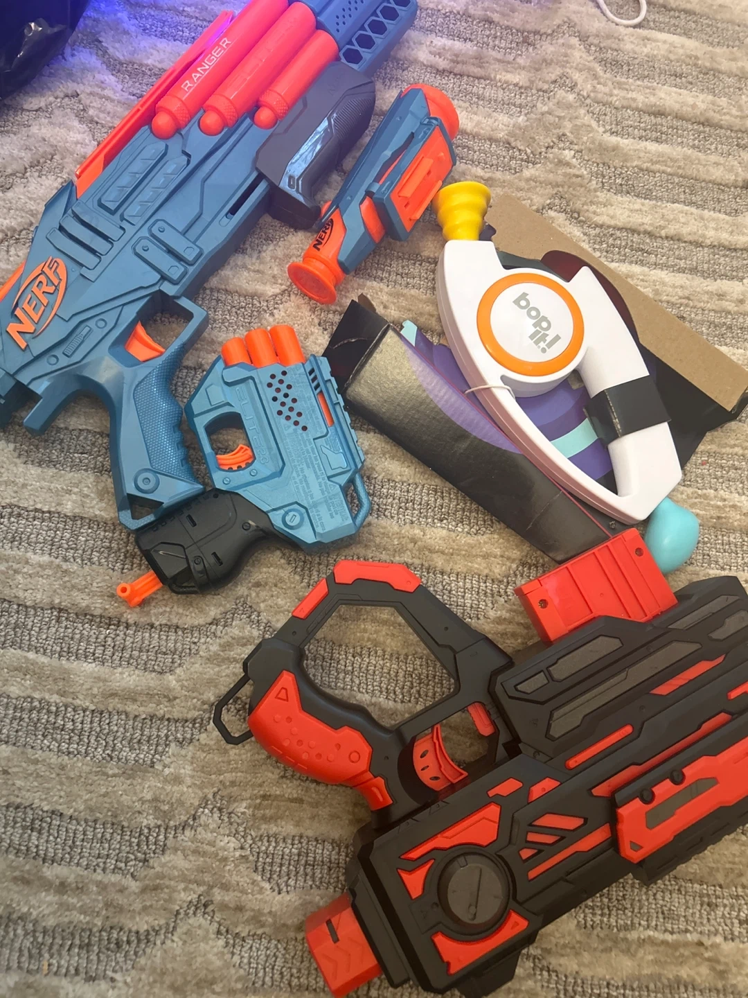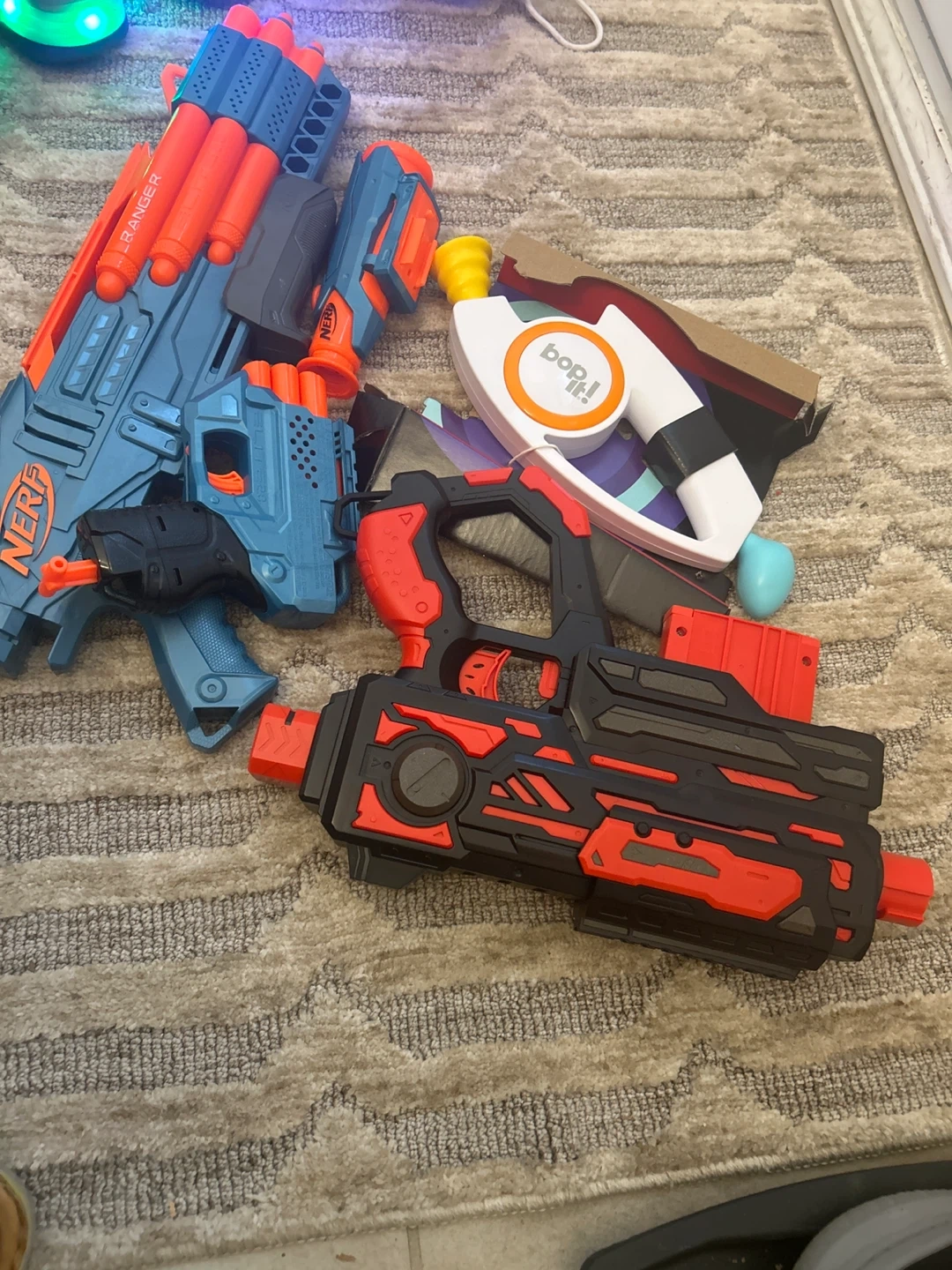 Selling a bundle of Nerf blasters and a Bop It! game. Great for some active fun indoors or outdoors. All items are in good used condition and ready for a new owner. Perfect for kids and adults alike!