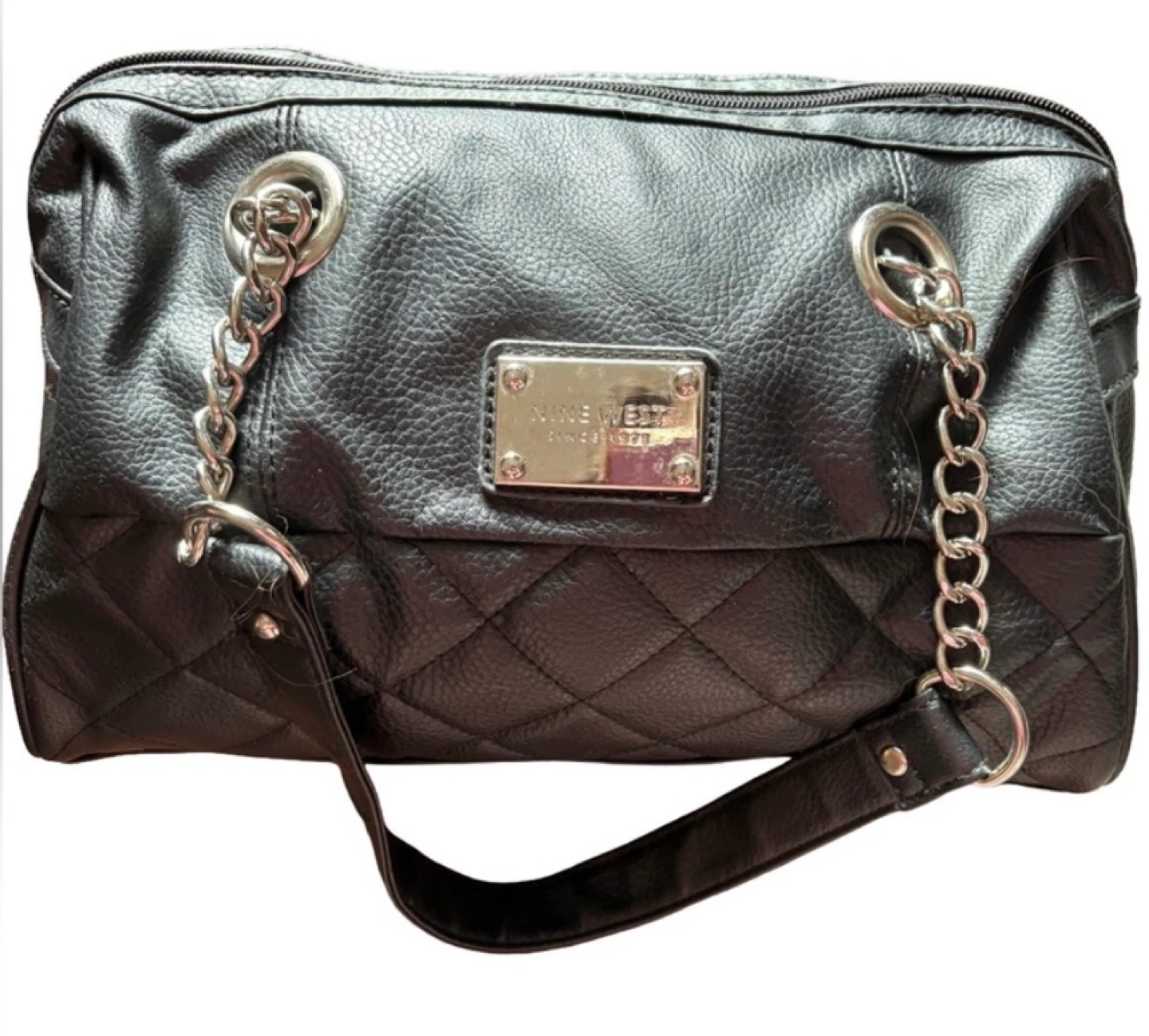 Classic quilting meets modern polish in this Nine West shoulder bag — a black beauty with silver chain accents and timeless texture. Perfect for everyday elegance or evening edge.