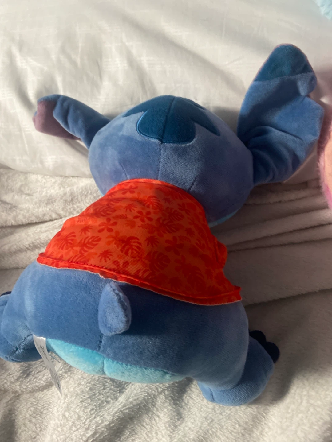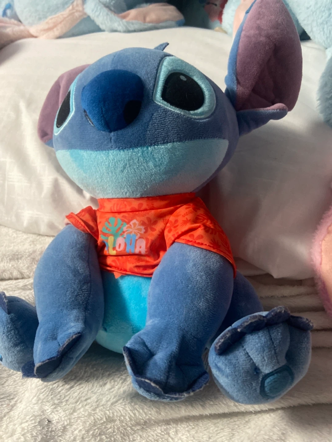 Selling a cute Stitch plush toy! It's in great condition and ready for a new home. Stitch is wearing an orange Aloha shirt. Perfect for any Disney fan
