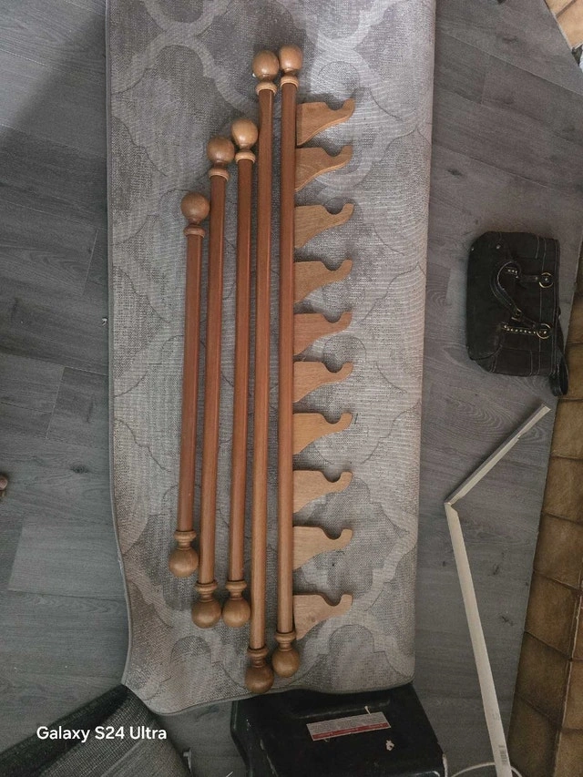 These curtain rods feature wooden construction with a ball end design and mounting hardware; they show wear from use. They're ready to bring a touch of classic charm to your window treatments. If this ad is still posted, rest assured, the curtain rods are still available!
