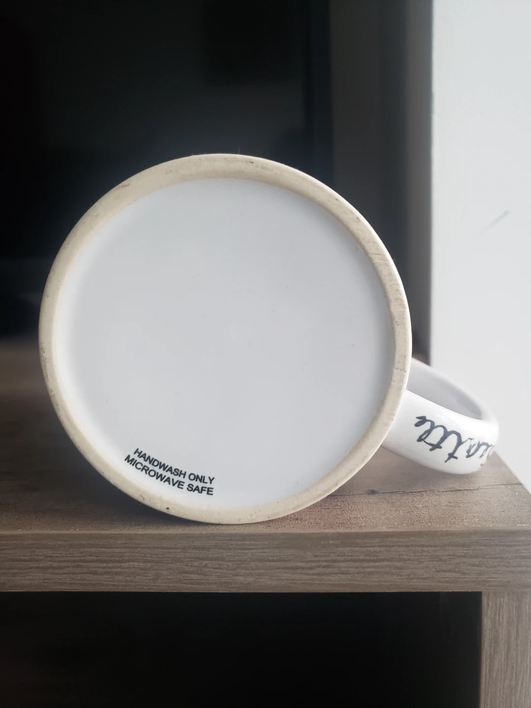 Unfortunately, my roommate put it through the dishwasher by mistake, so the design is a bit messed up. However, the mug is still functional - no chips or cracks. It was only used twice.