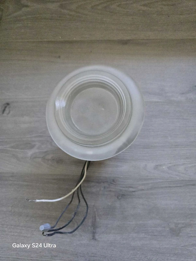 Illuminate your space with this flush mount ceiling light fixture, featuring a classic round glass design. This pre-owned fixture is in good condition and ready to install, offering a simple and elegant lighting solution for any room. Key features: - Flush mount design - Round glass cover