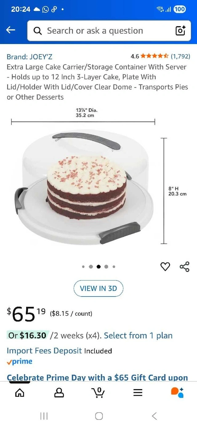 This JOEY'Z extra large cake carrier and storage container is perfect for transporting your culinary creations! It can hold up to a 12-inch 3-layer cake, and comes with a clear dome lid and plate. This cake carrier is used, but still in good condition. Happy baking!