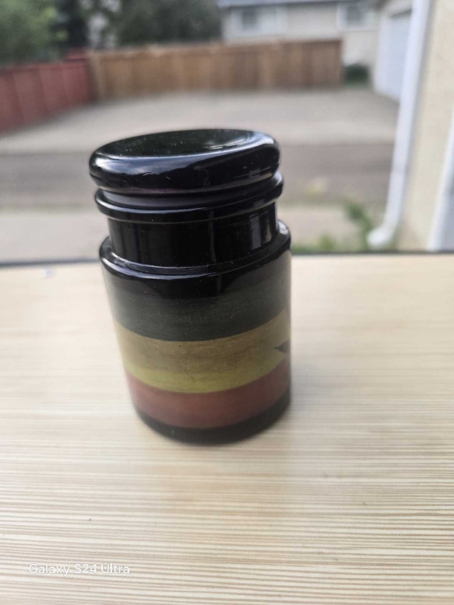 Add a touch of Rasta vibes to your space with this unique decorative glass jar! This eye-catching piece features a vibrant Rasta colour scheme and a bold marijuana leaf design. Perfect for adding a bit of personality to your home decor. Additional details: - Colour: Green, Yellow, Red - Design: Marijuana Leaf Given the unique design and handcrafted nature, I'm pricing it at $10. If the ad is still up, it's still available!