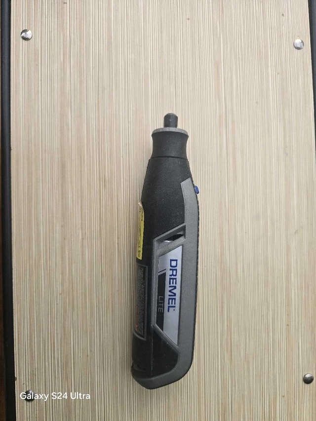 I'm selling a Dremel Lite rotary tool. It's in used condition and ready for your DIY projects. Here are some details: * Compact and lightweight design * Variable speed settings * Perfect for various tasks, including sanding, polishing, and engraving. Let me know if you're interested!