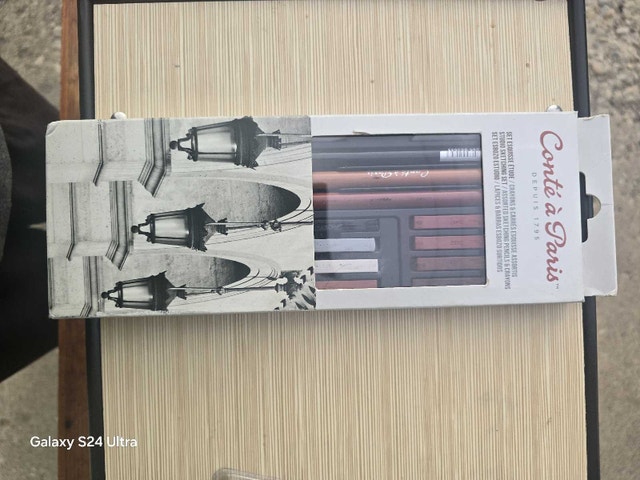 Unleash your inner artist with this brand new Conté à Paris sketching set, perfect for creating stunning drawings with its assortment of pencils, crayons, and charcoal. Included: * Sketching pencils * Crayons * Charcoal This set is ready to inspire your next masterpiece! Just a heads-up—if you're seeing this ad, it's still up for grabs!