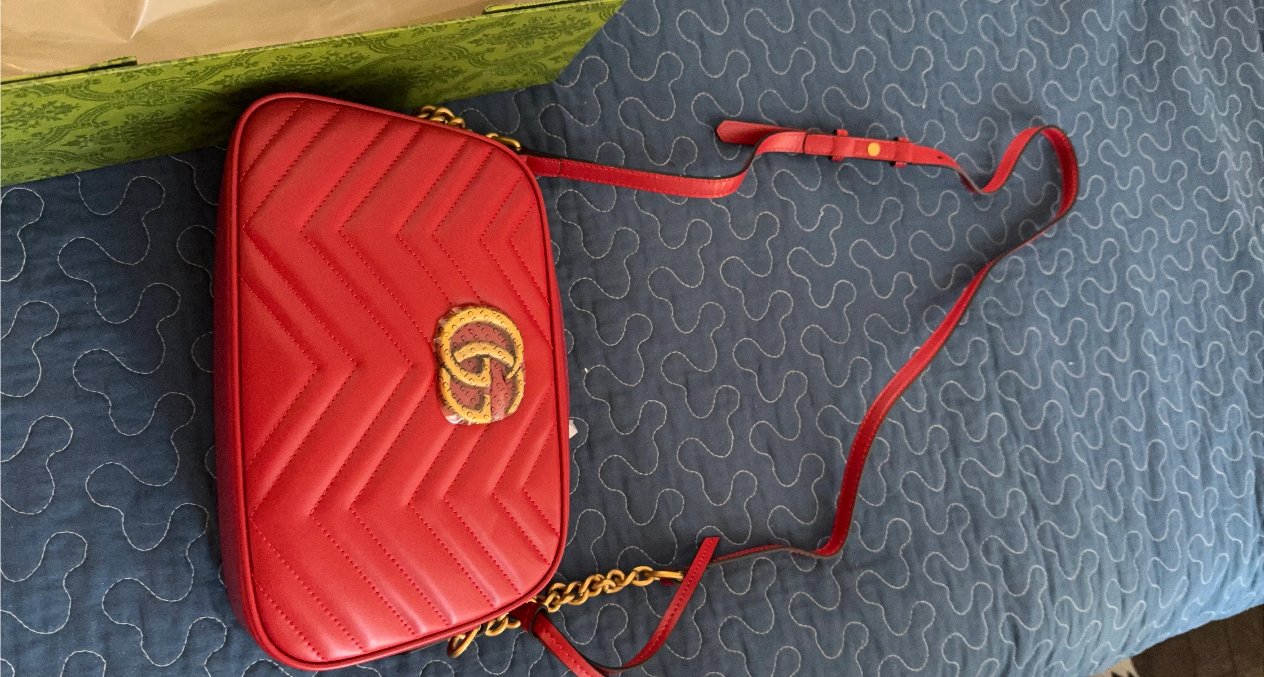 Selling a beautiful Gucci Marmont small shoulder bag in red. It comes with its original box. This stylish bag is perfect for adding a pop of color to any outfit!