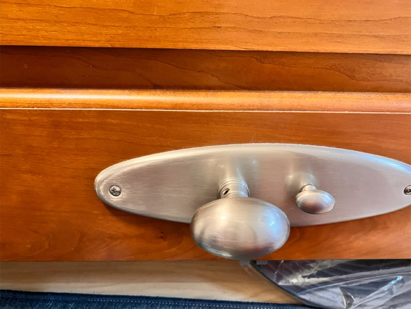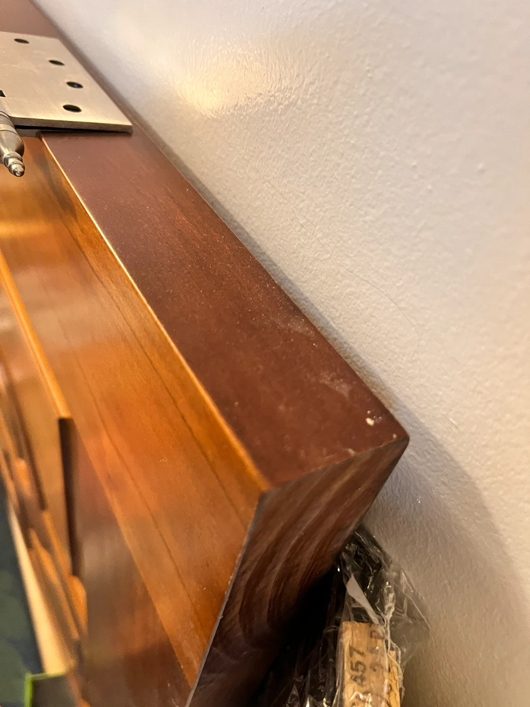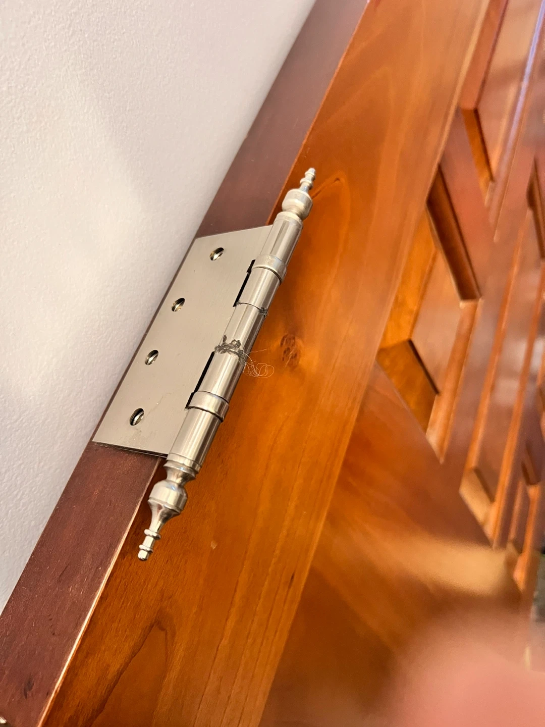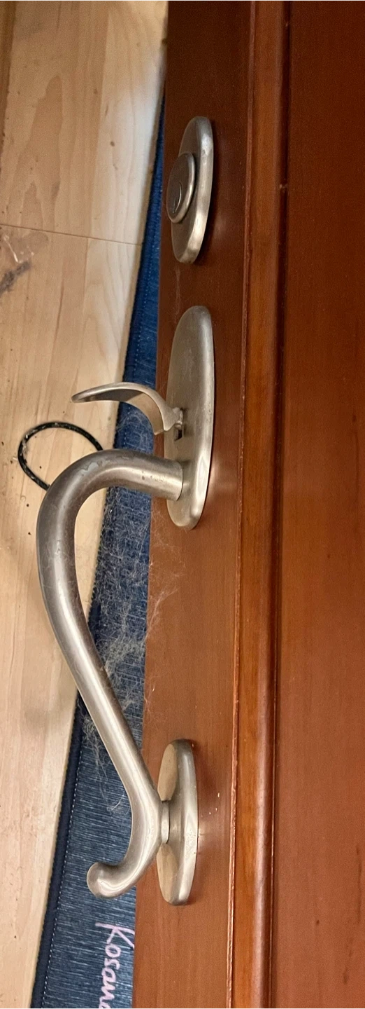 a hard wood front door with a unique design and included hardware. It's in excellent condition and ready to be installed. Perfect for adding a touch of character to your home!